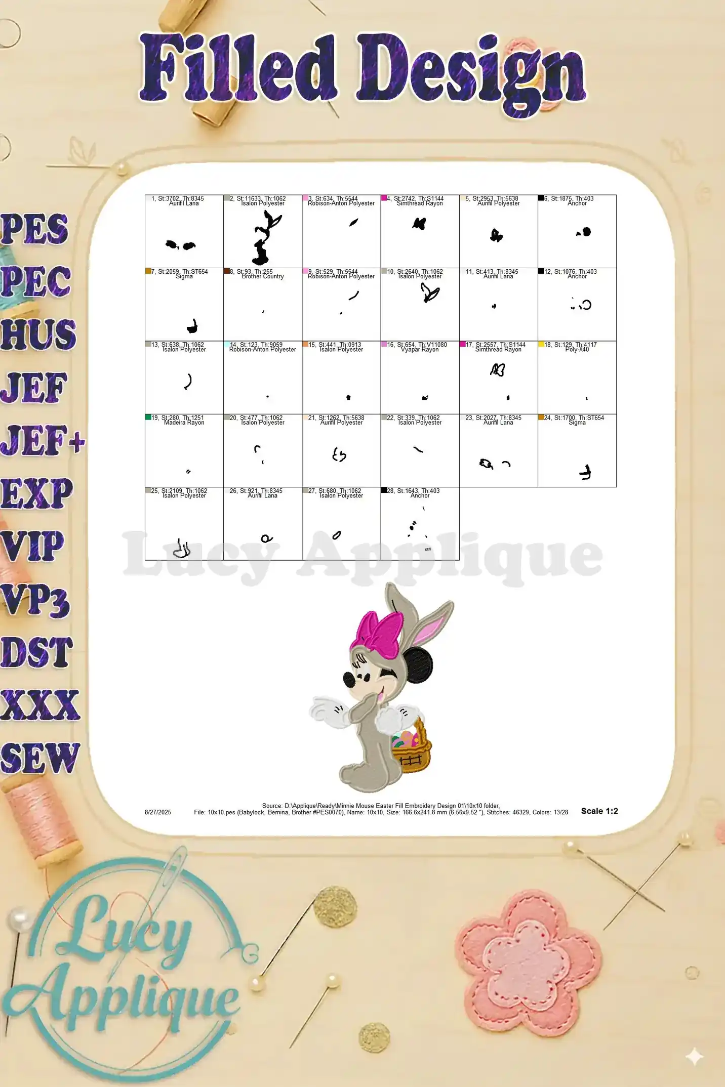 Minnie Mouse Easter Fill Embroidery Design 01 – Instant Download