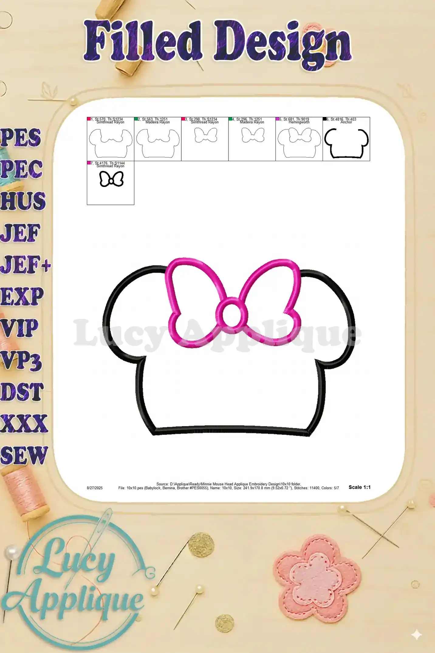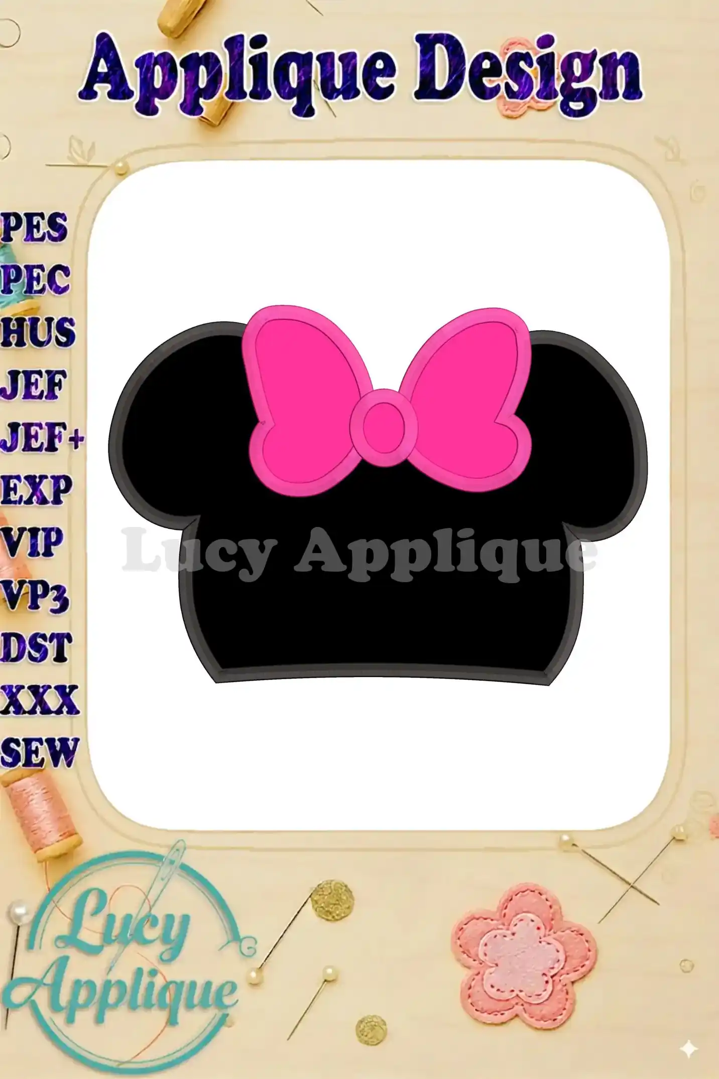 Minnie Mouse Head Applique Embroidery Design – Instant Download