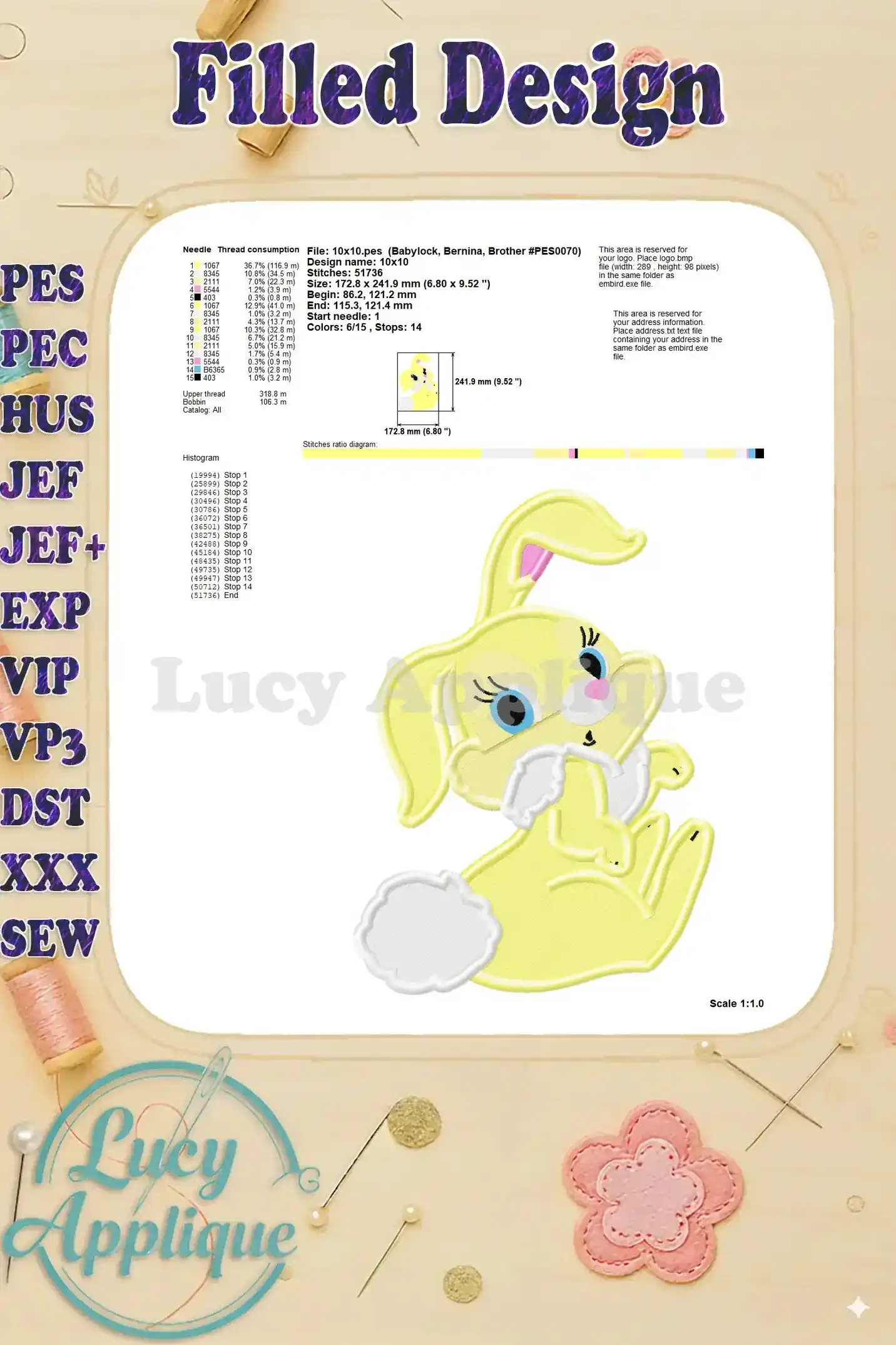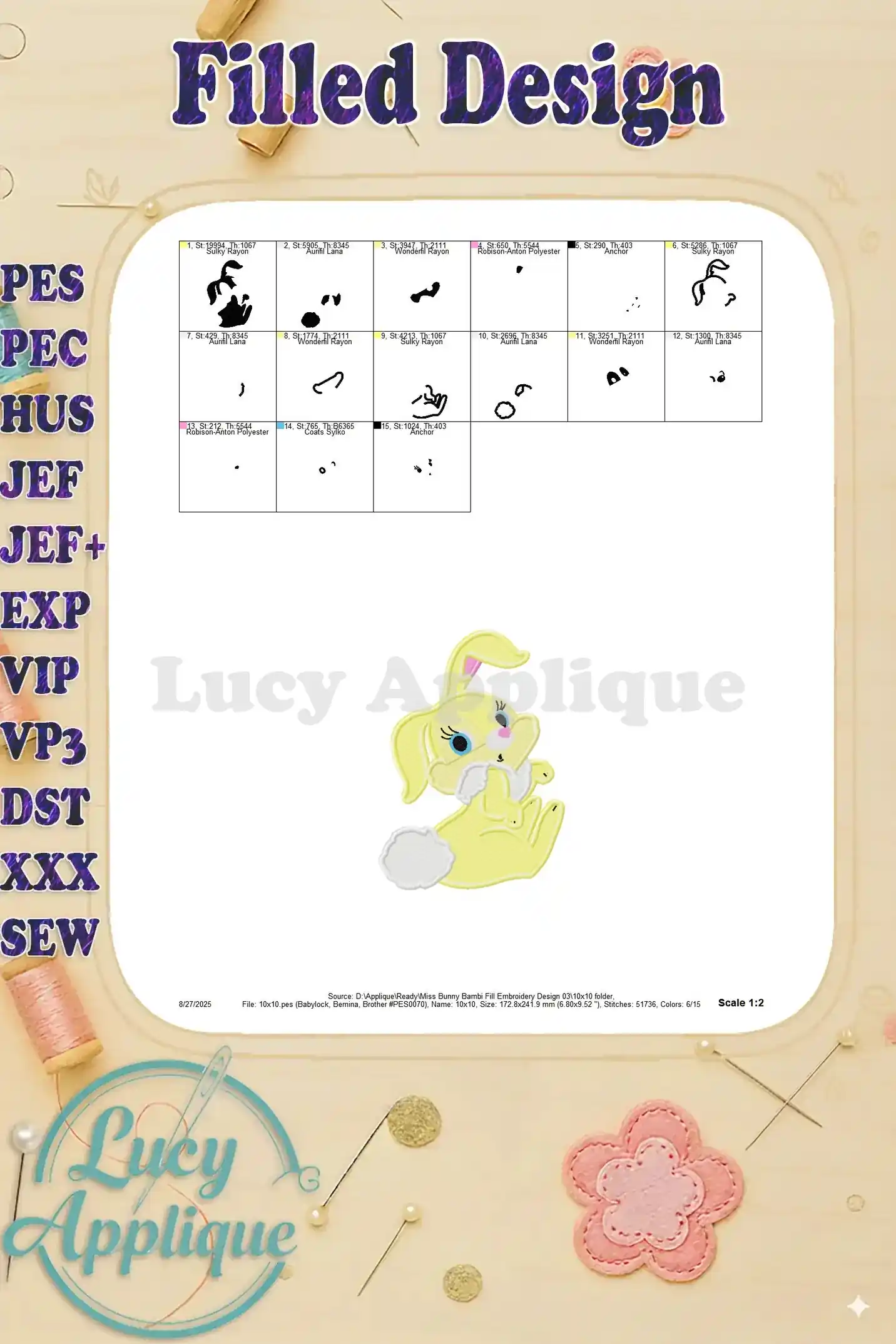 Miss Bunny Bambi Fill Embroidery Design 03 – Instant Download
