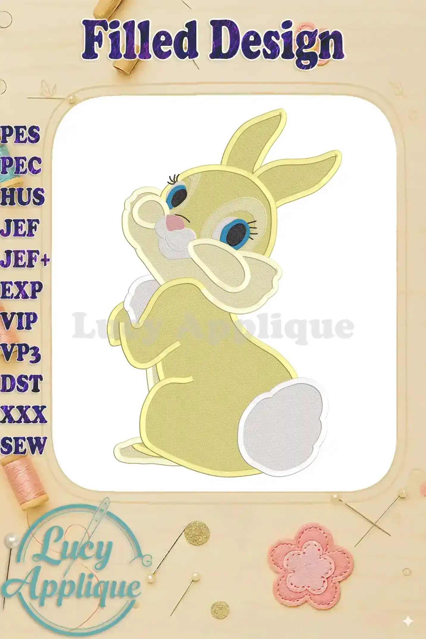 Miss Bunny Bambi Fill Embroidery Design – Instant Download