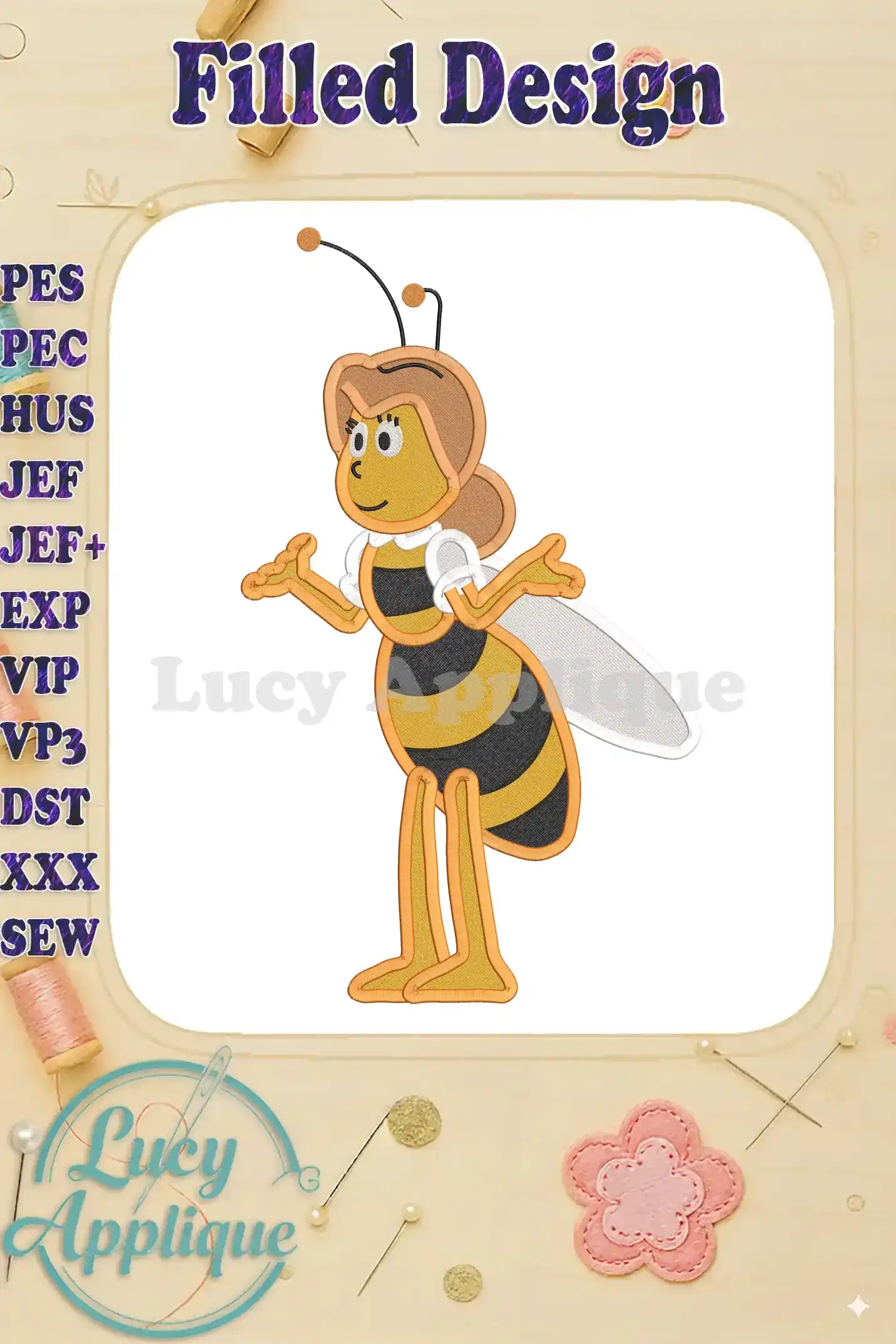 Miss Cassandra Maya the Bee Fill Embroidery Design 01 – Instant Download