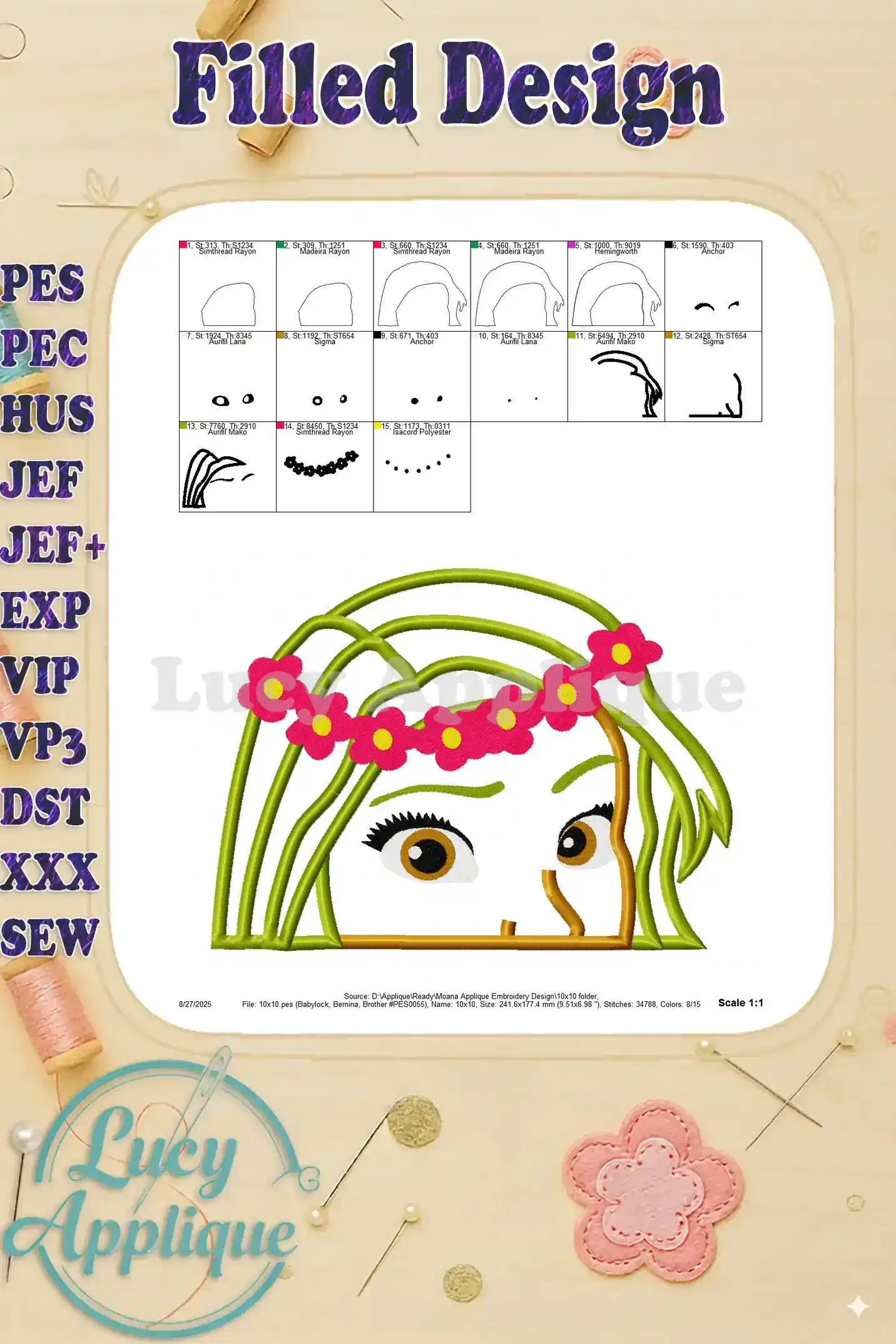 Moana Applique Embroidery Design – Instant Download