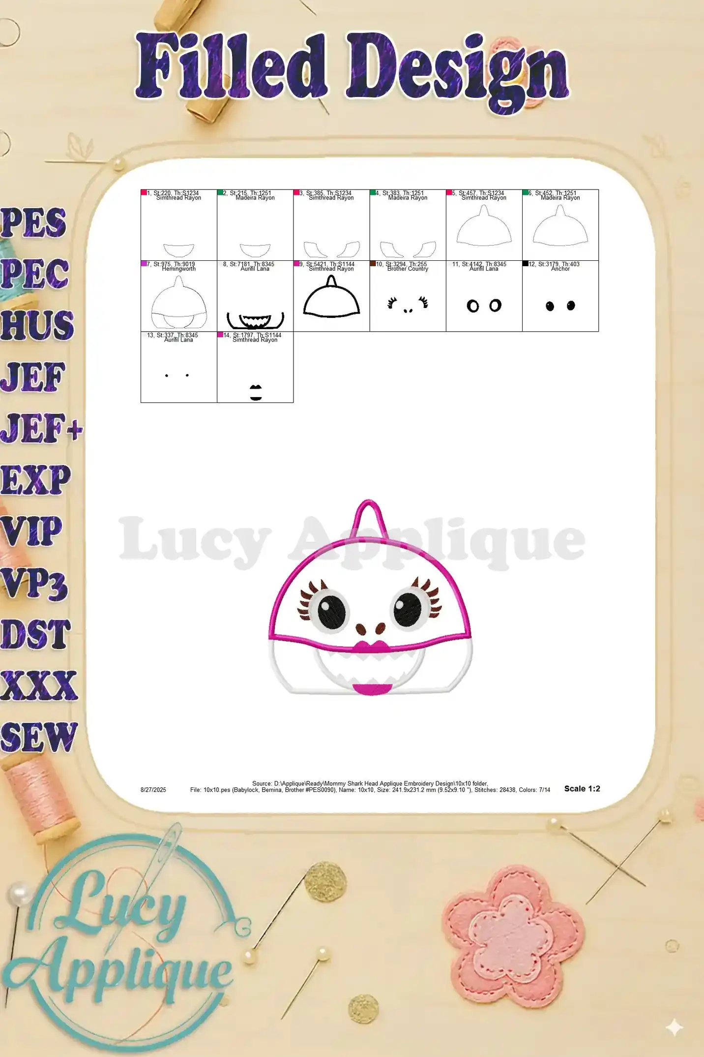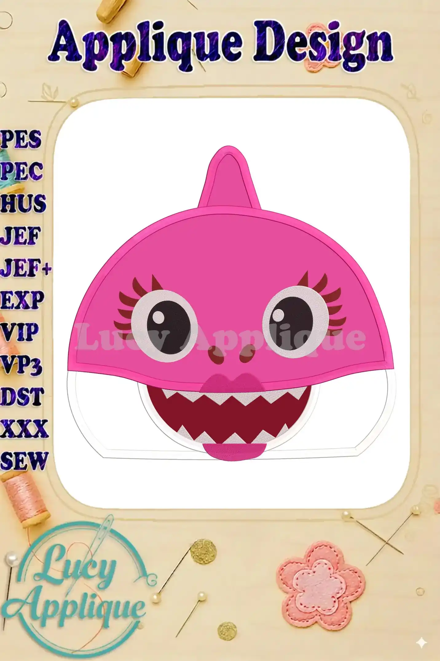 Mommy Shark Head Applique Embroidery Design – Instant Download