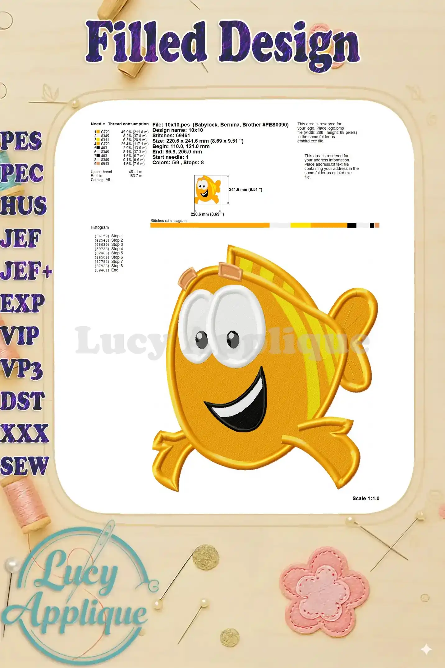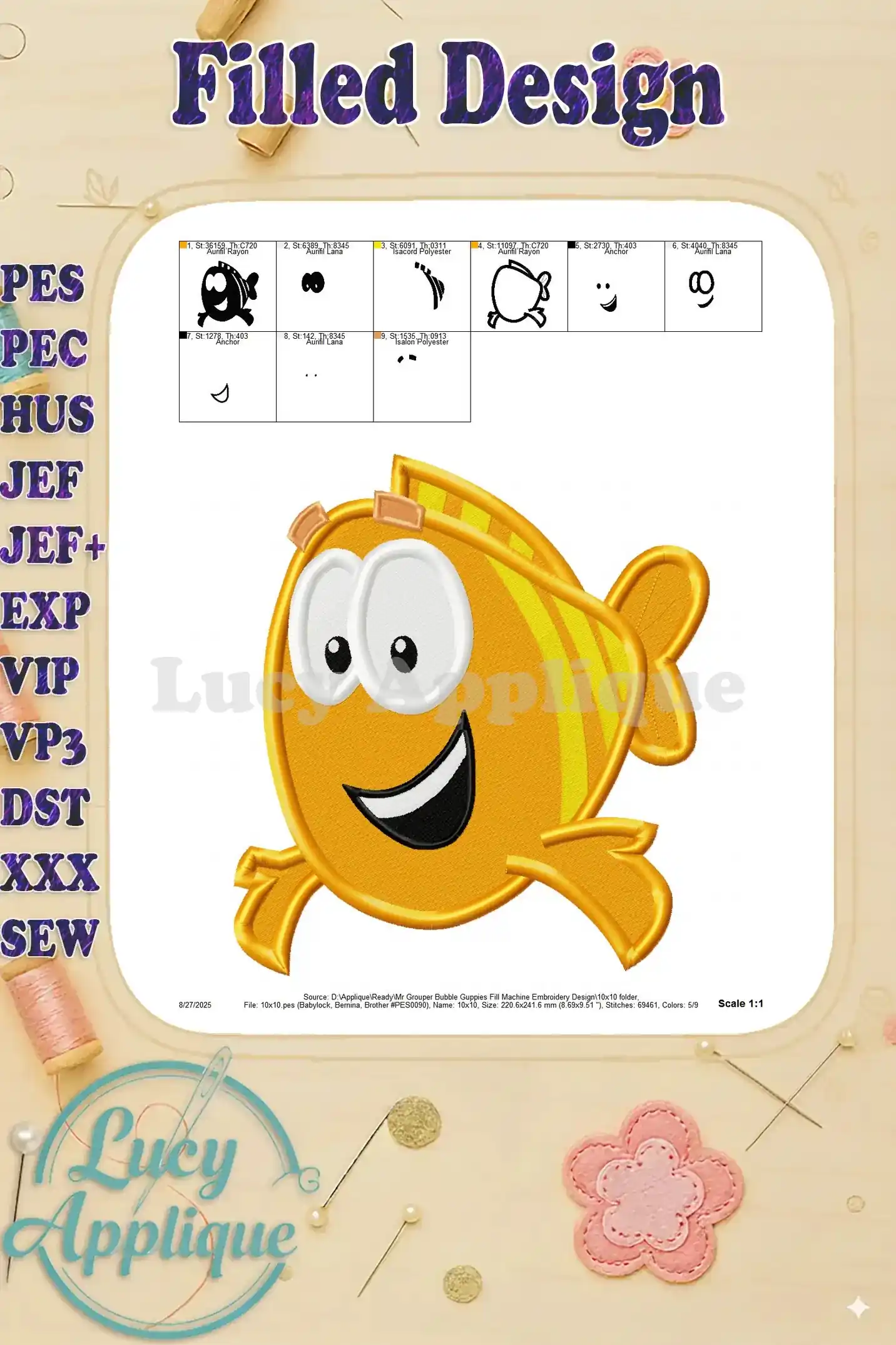 Mr Grouper Bubble Guppies Fill Machine Embroidery Design – Instant Download