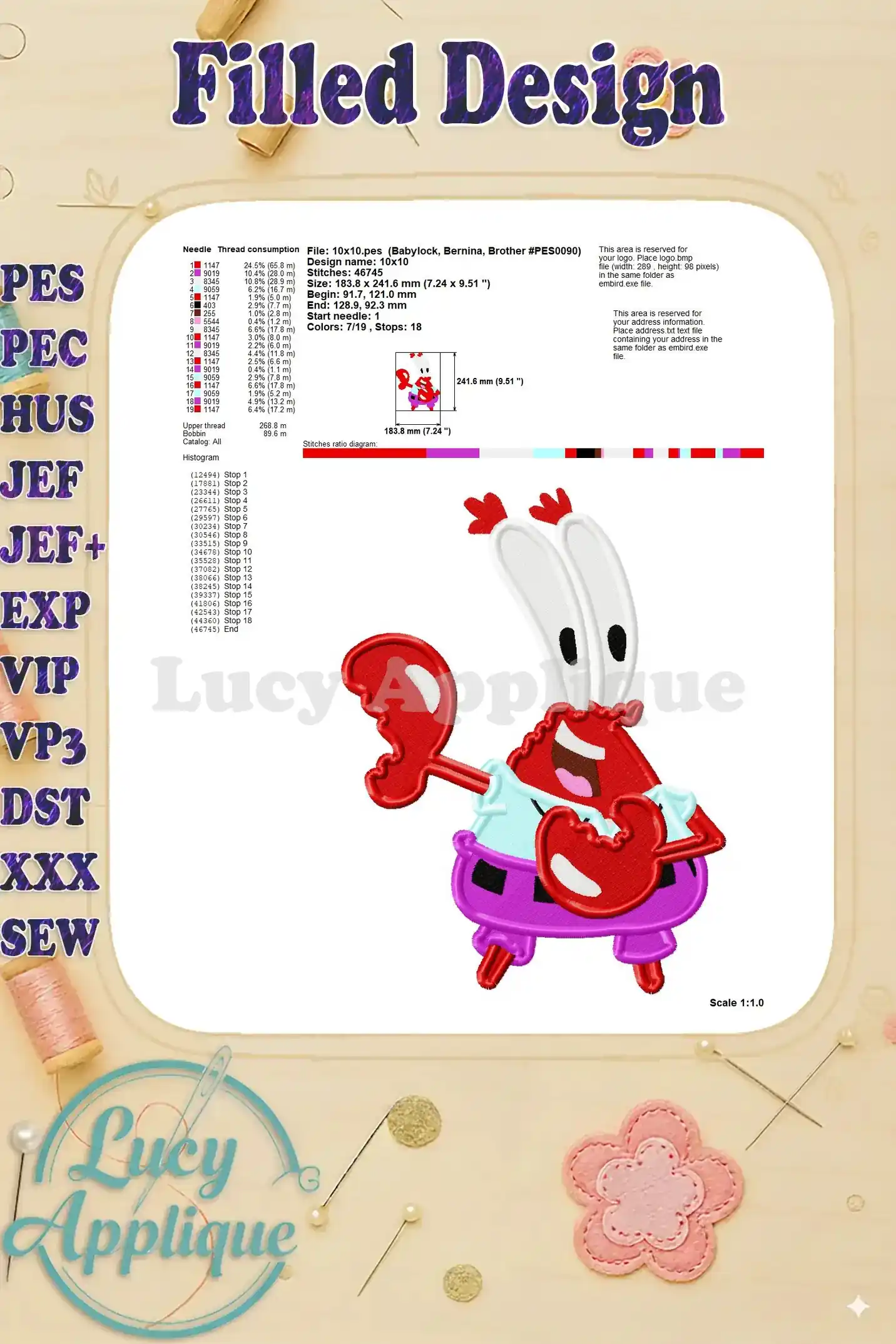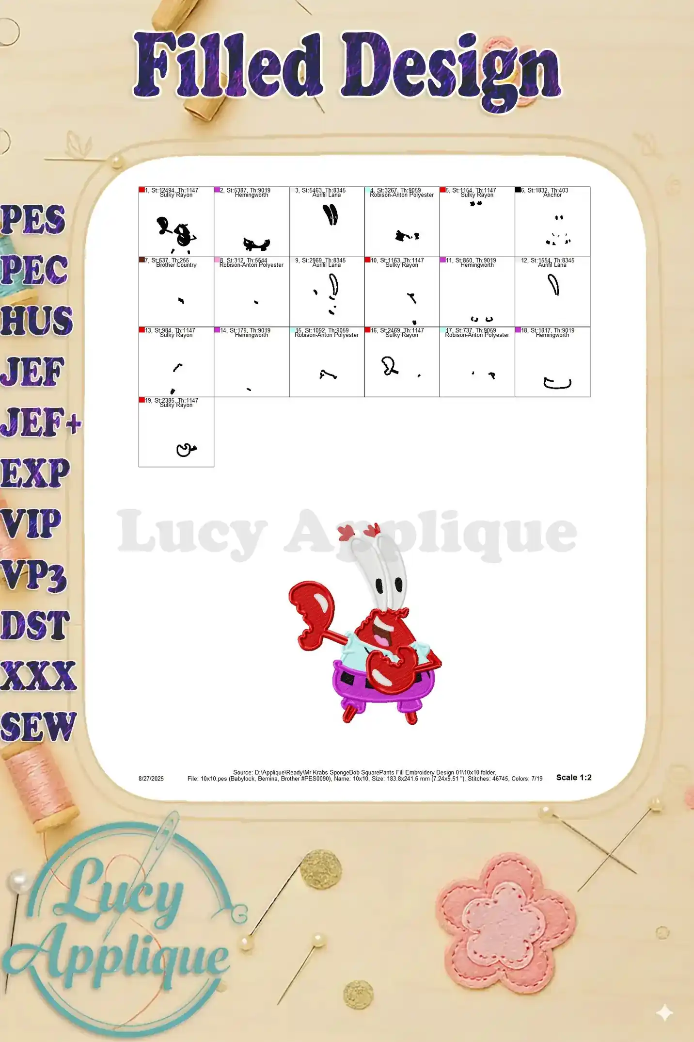 Mr Krabs SpongeBob SquarePants Fill Embroidery Design 01 – Instant Download