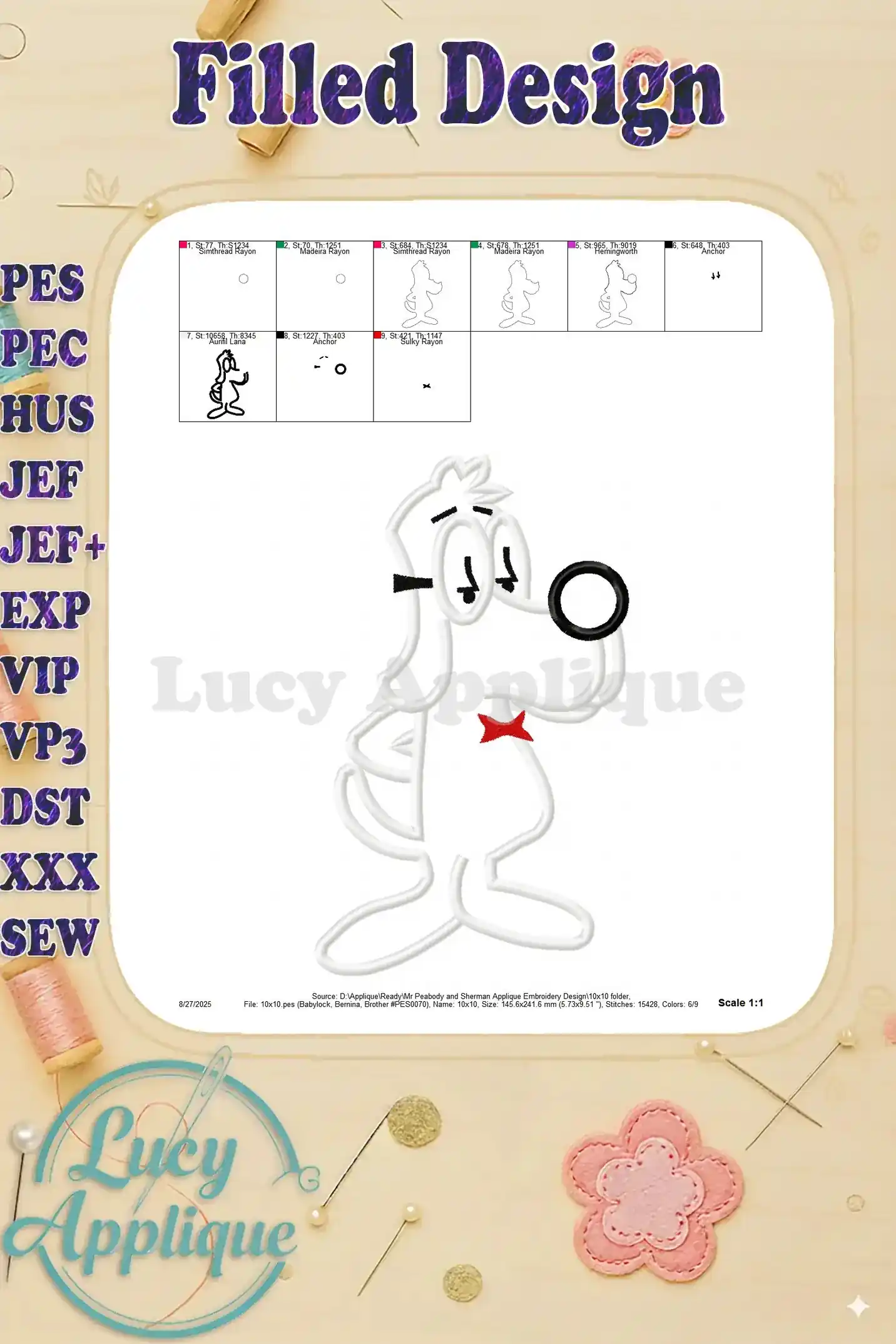Mr Peabody and Sherman Applique Embroidery Design – Instant Download