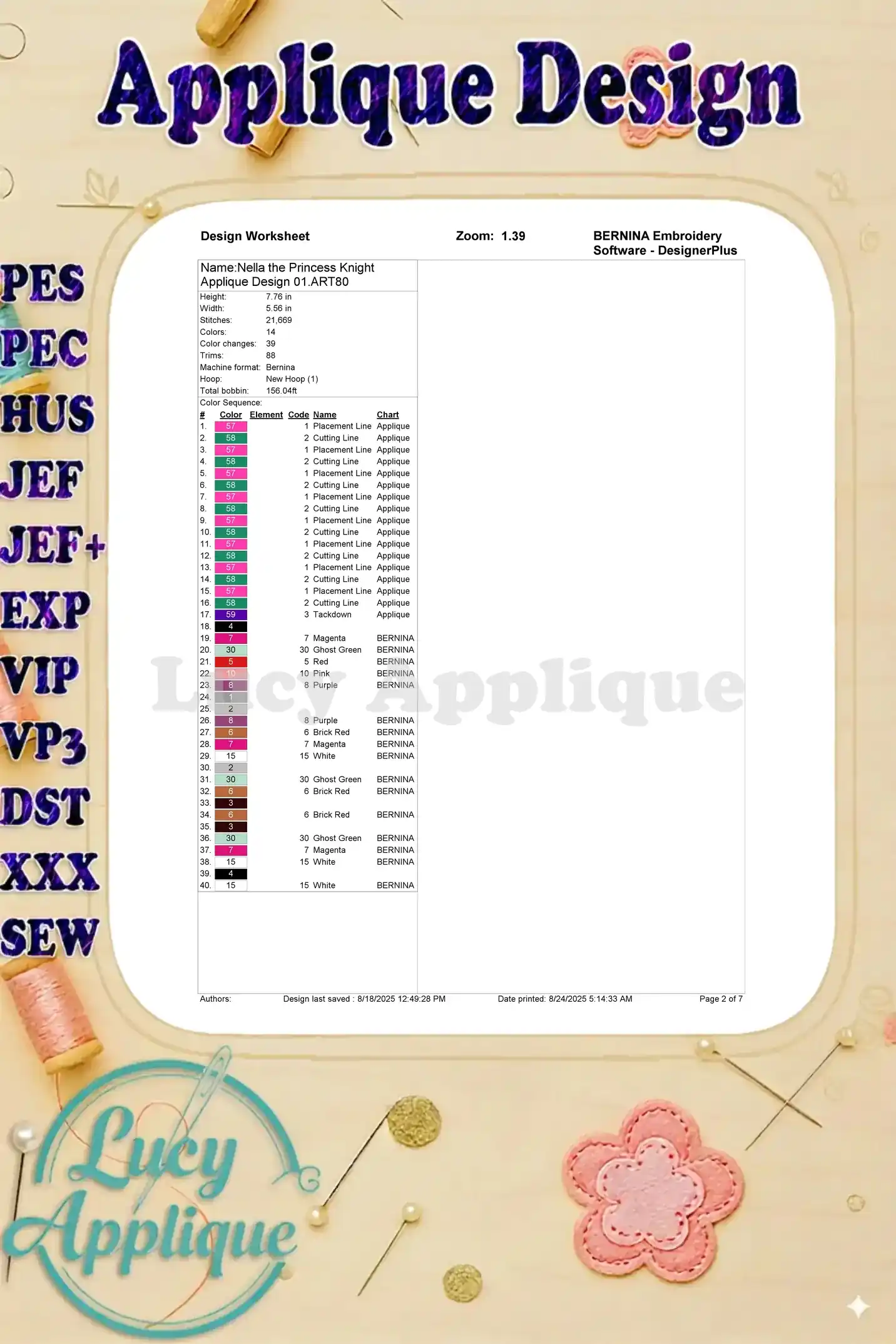 Nella the Princess Knight Applique Design 01 - Instant Download Nella the Princess Knight Applique Design 01 – Instant Download