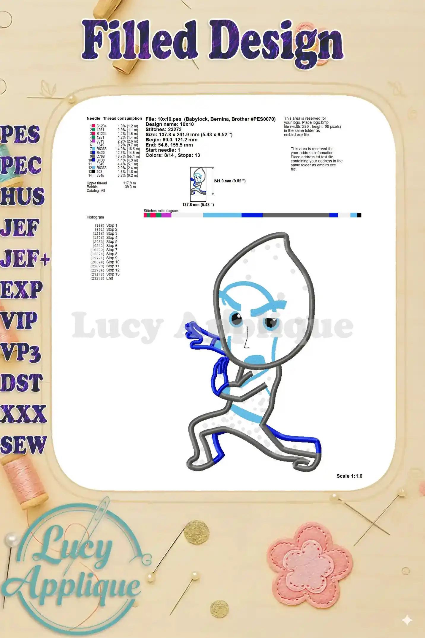 Night Ninja Pj Masks Applique Embroidery Design – Instant Download