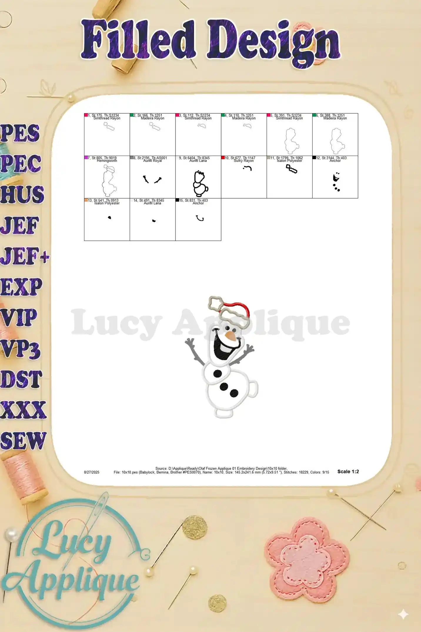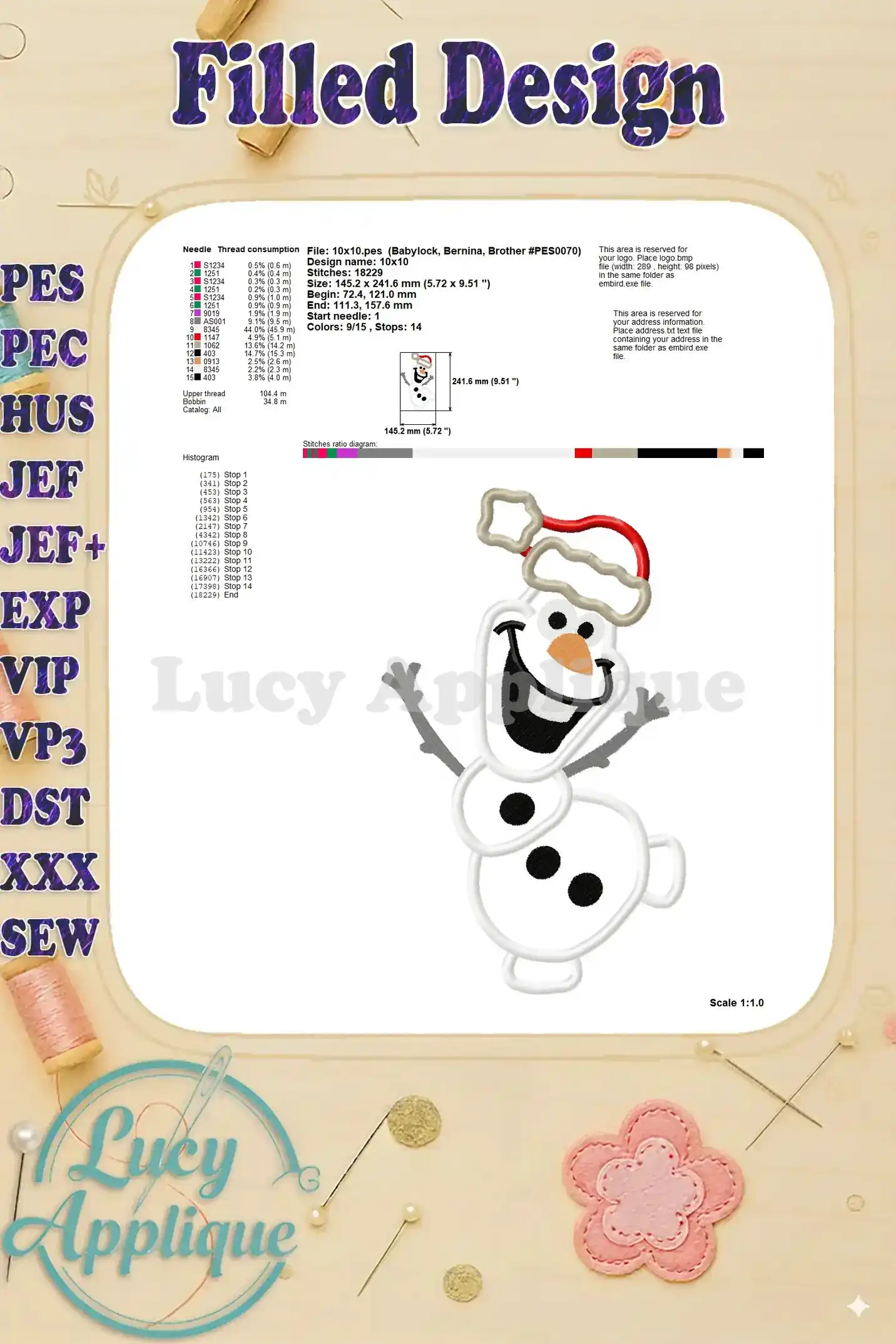 Olaf Frozen Applique 01 Embroidery Design – Instant Download