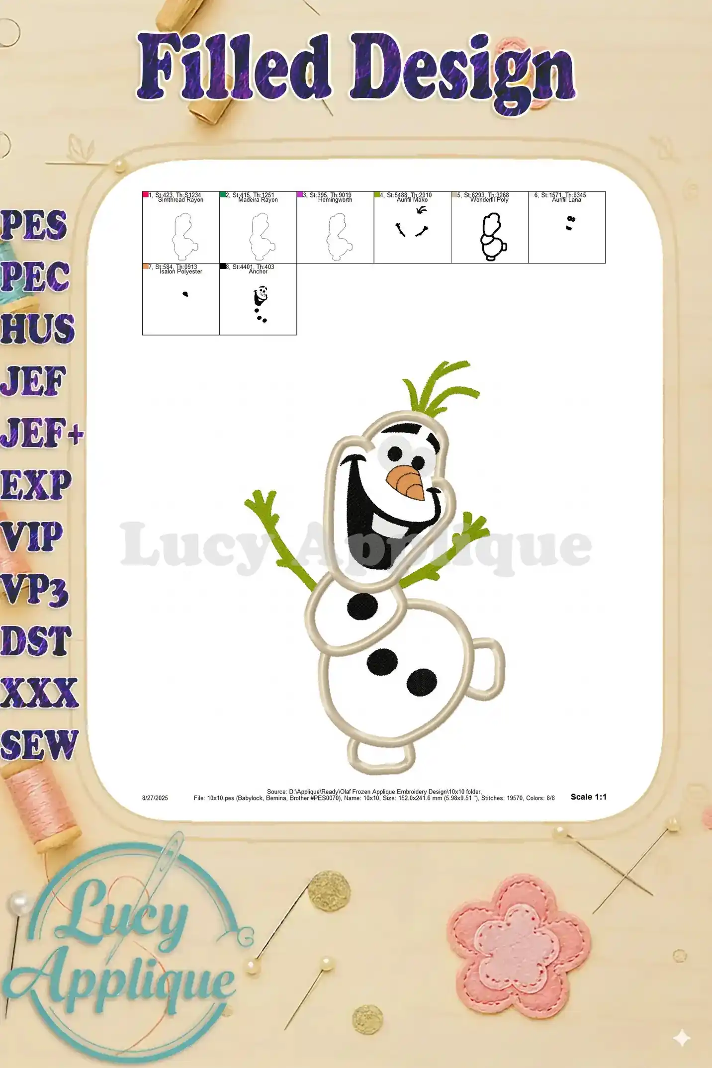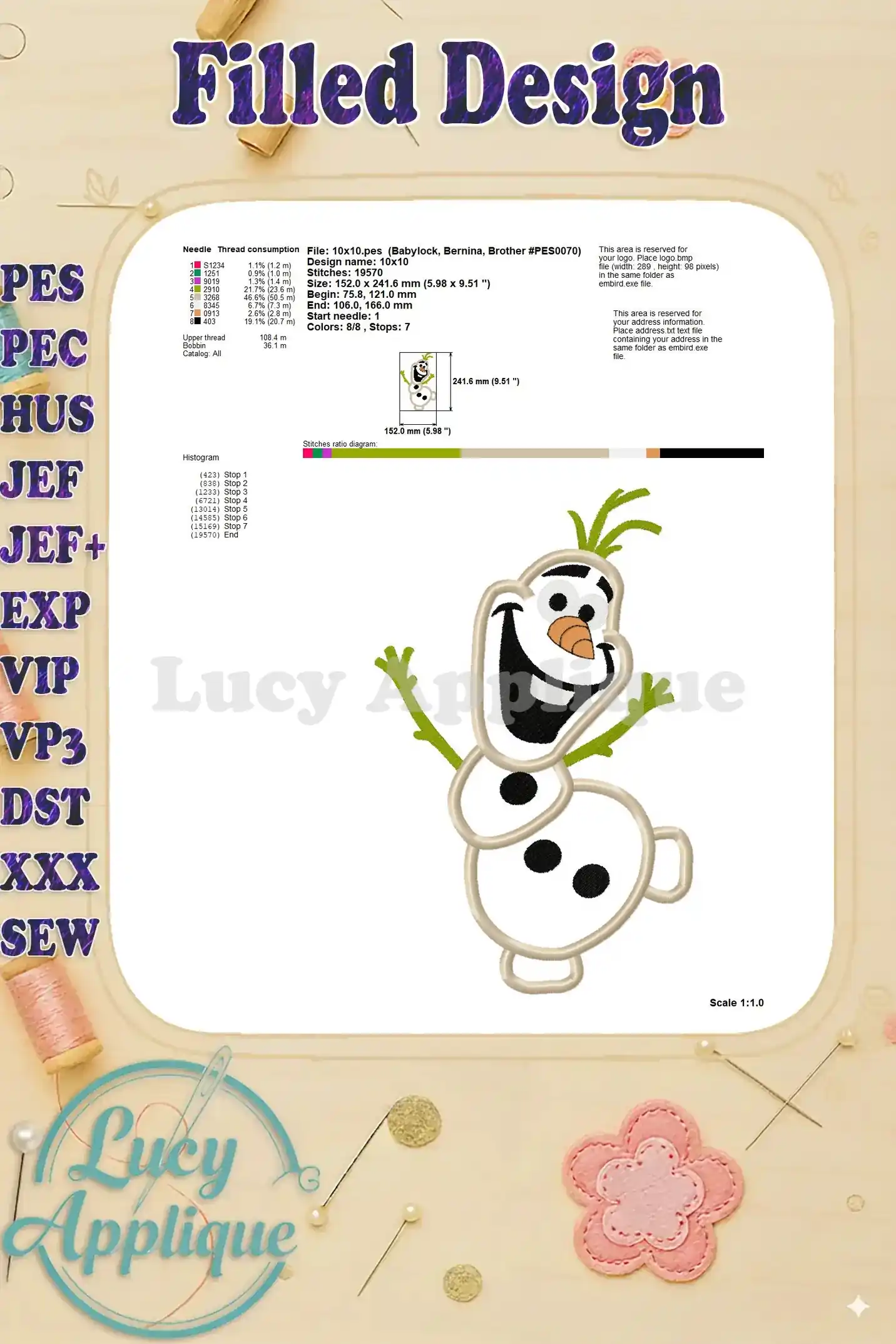 Olaf Frozen Applique Embroidery Design – Instant Download