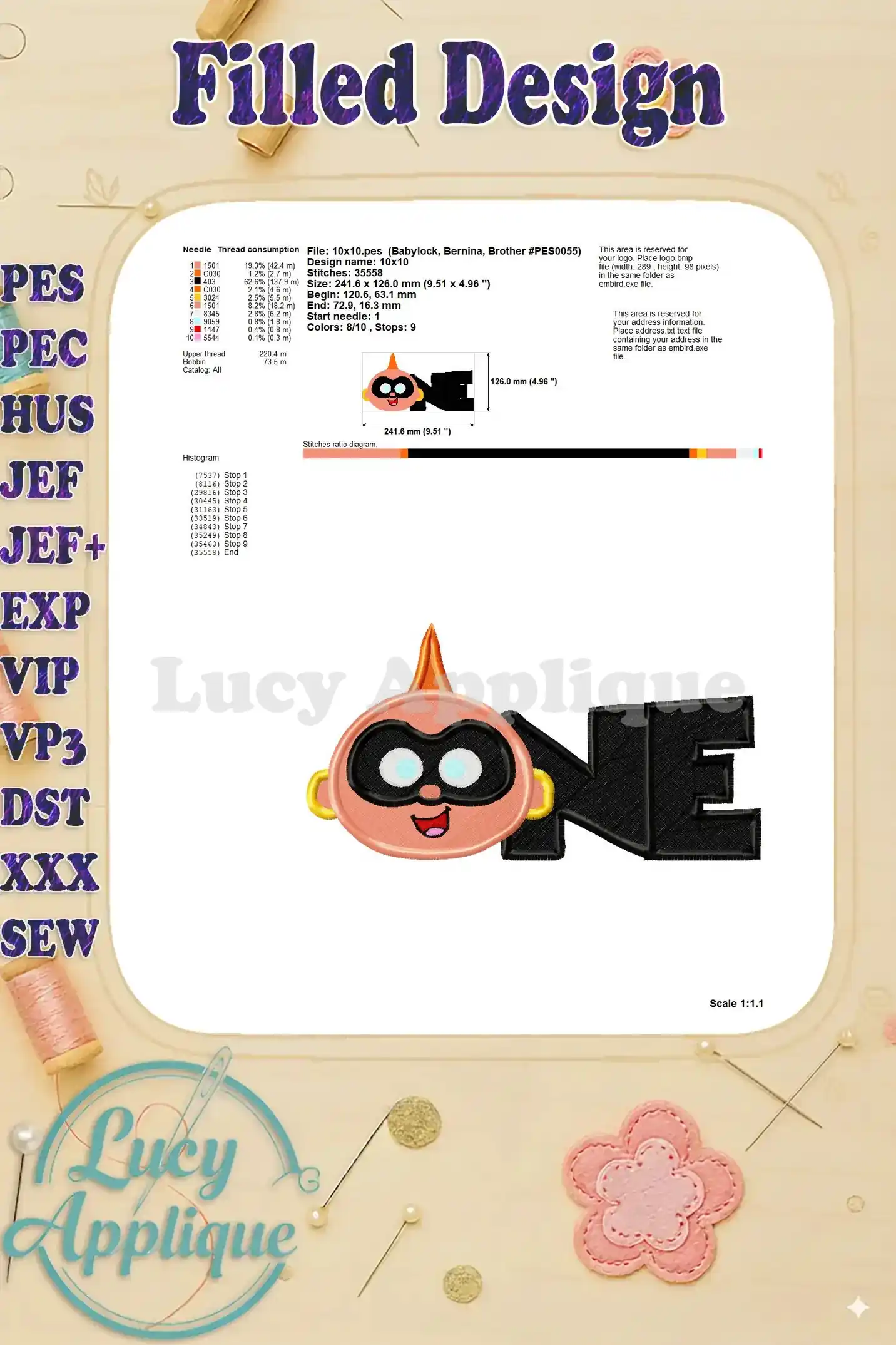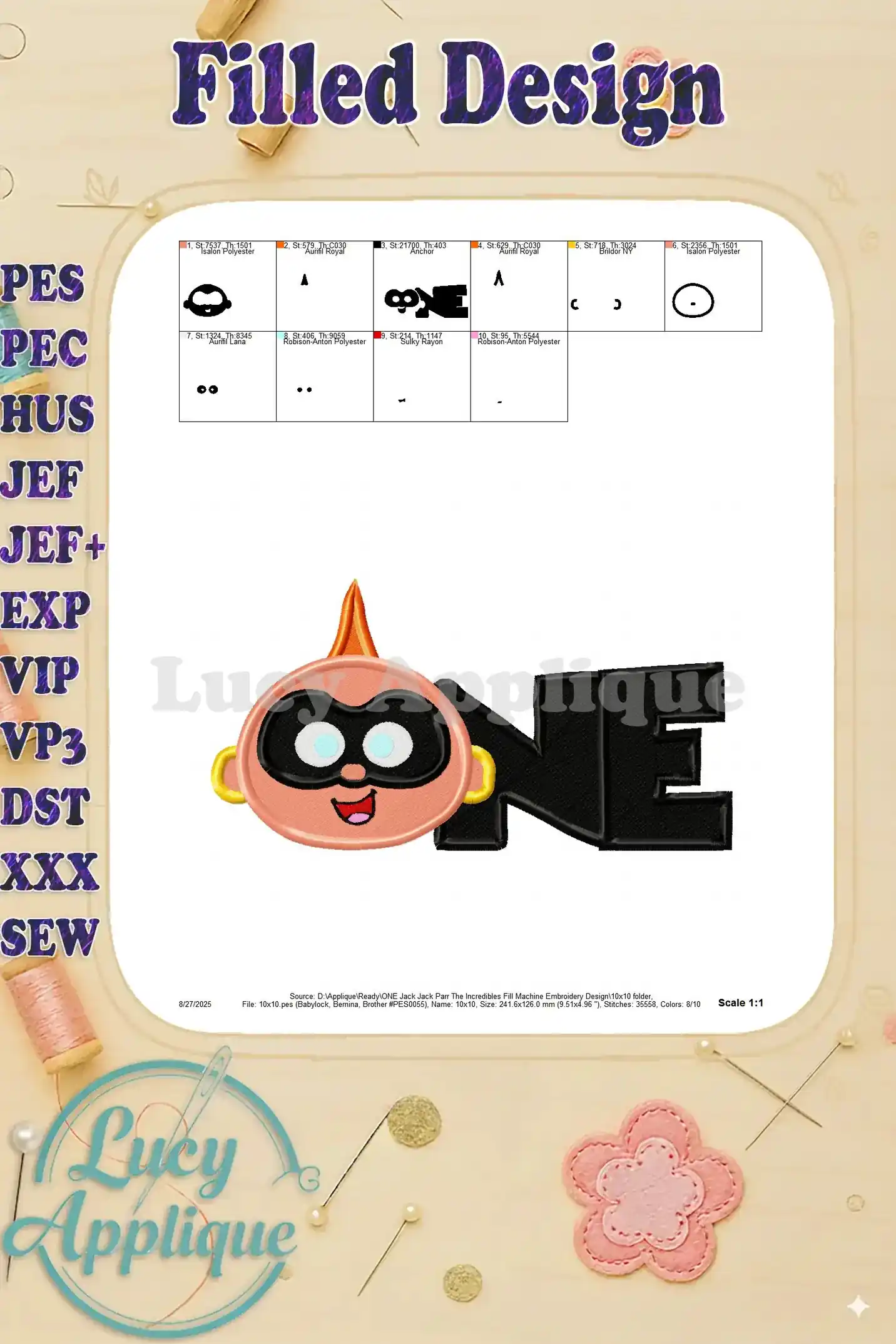 ONE Jack Jack Parr The Incredibles Fill Machine Embroidery Design – Instant Download