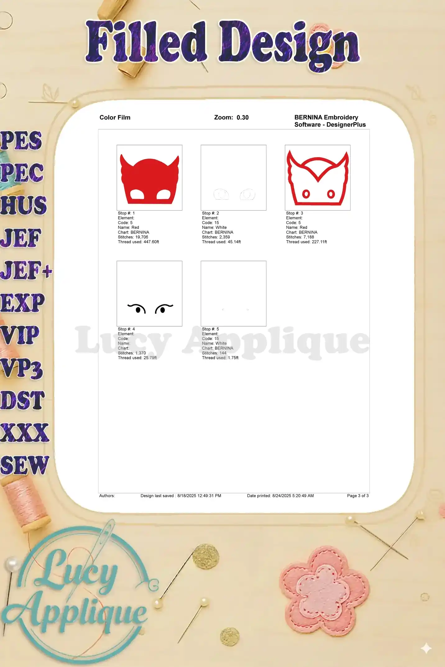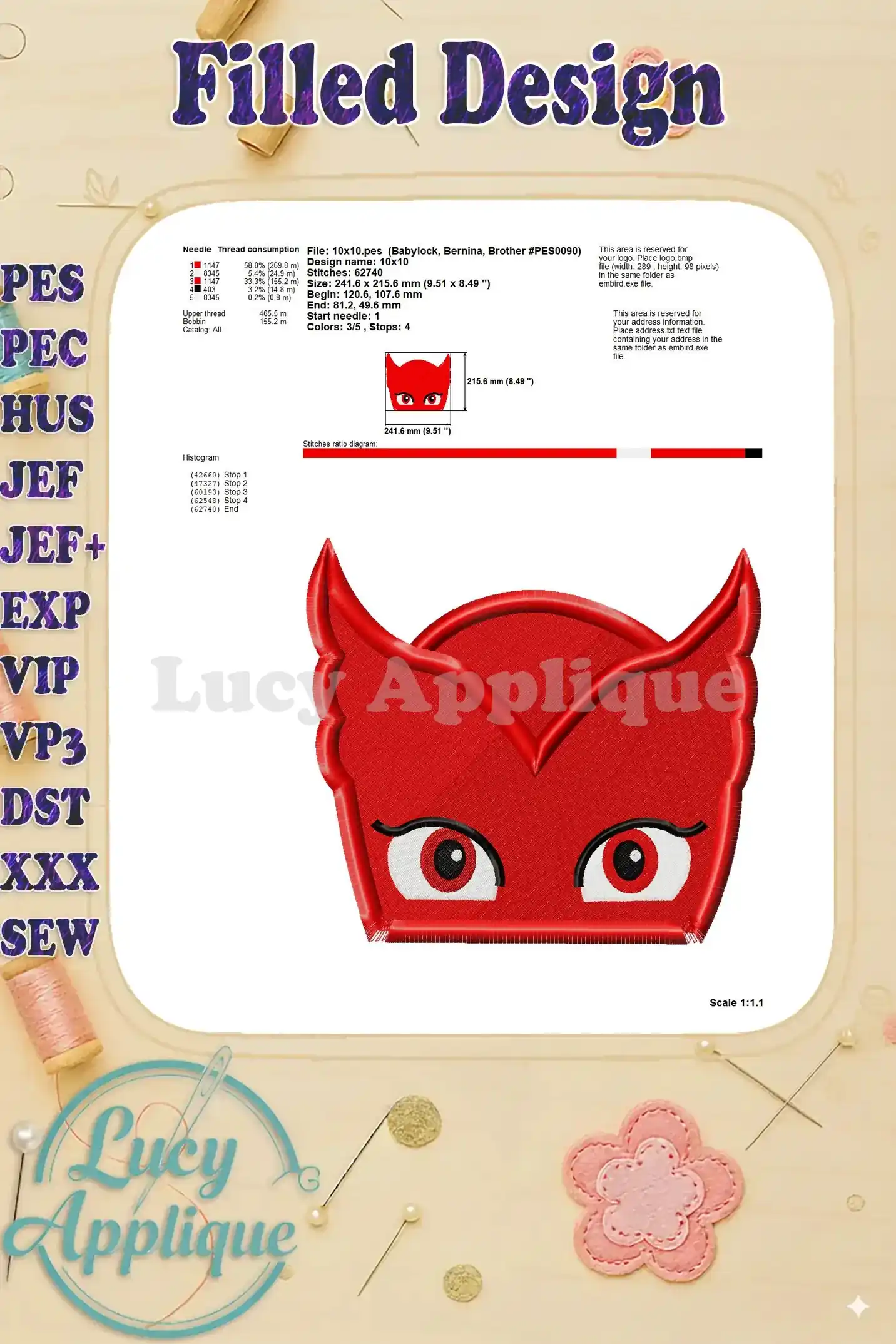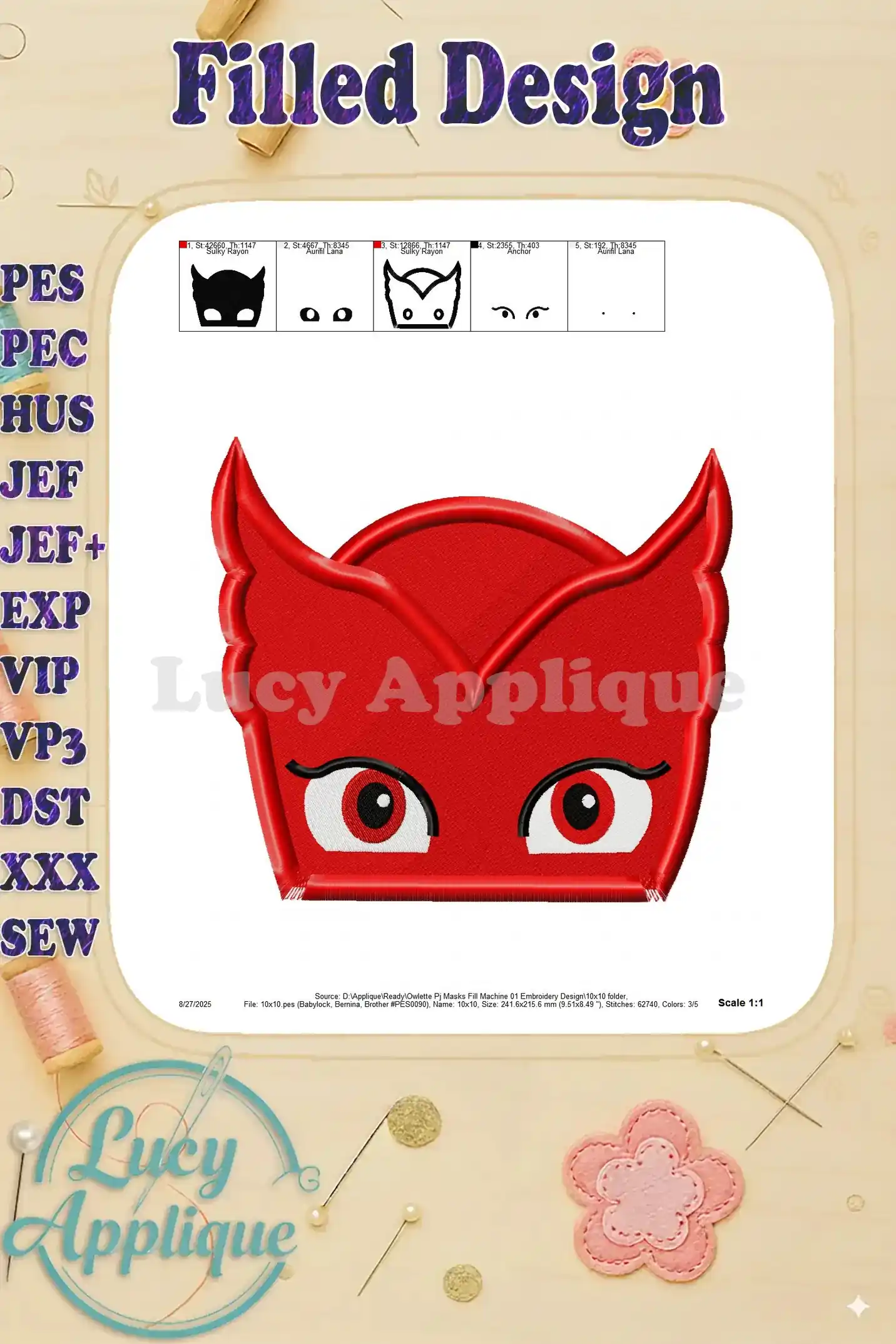 Owlette Pj Masks Fill Machine 01 Embroidery Design – Instant Download