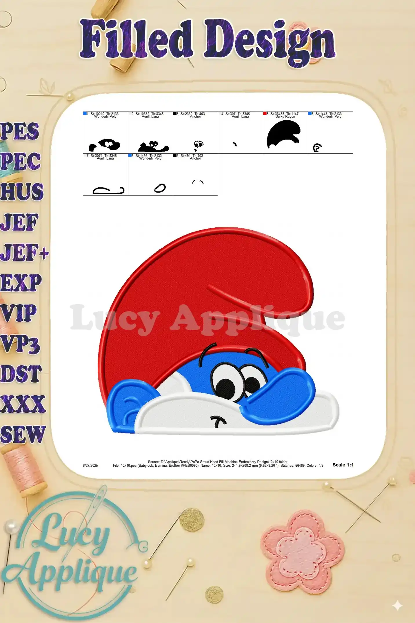 PaPa Smurf Head Fill Machine Embroidery Design – Instant Download