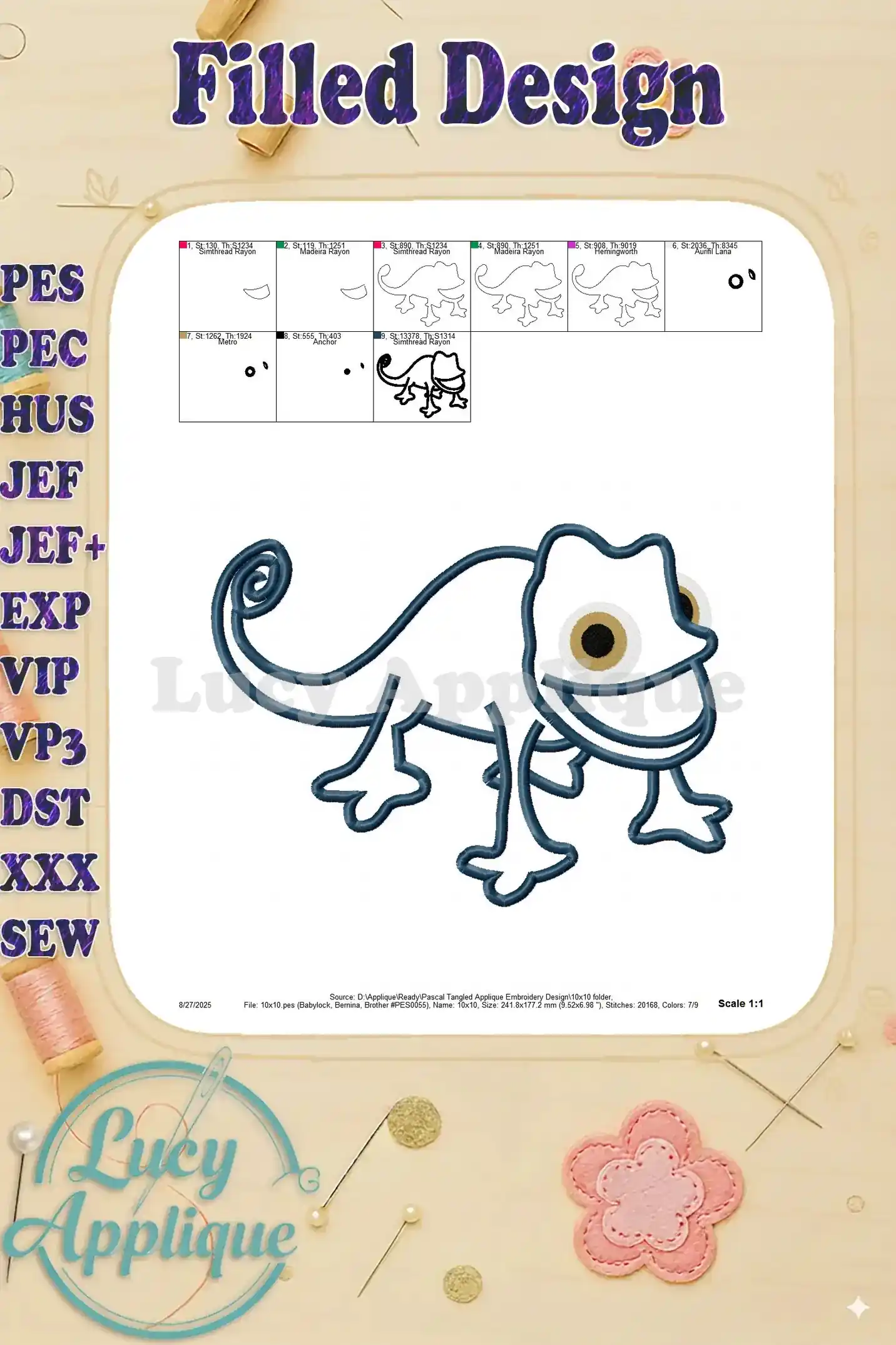 Pascal Tangled Applique Embroidery Design – Instant Download