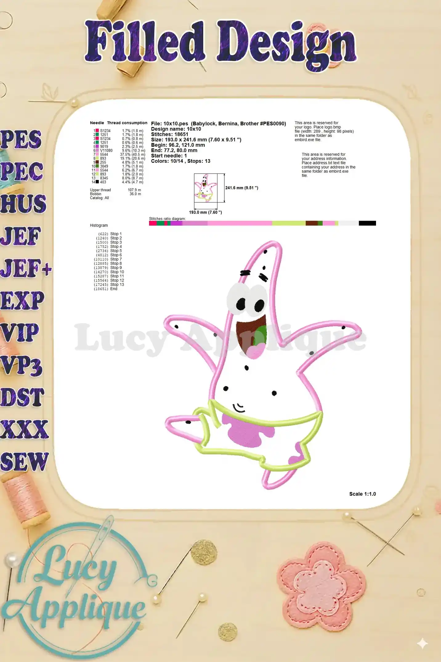 Patrick Star Spongebob Applique Design 01 – Instant Download
