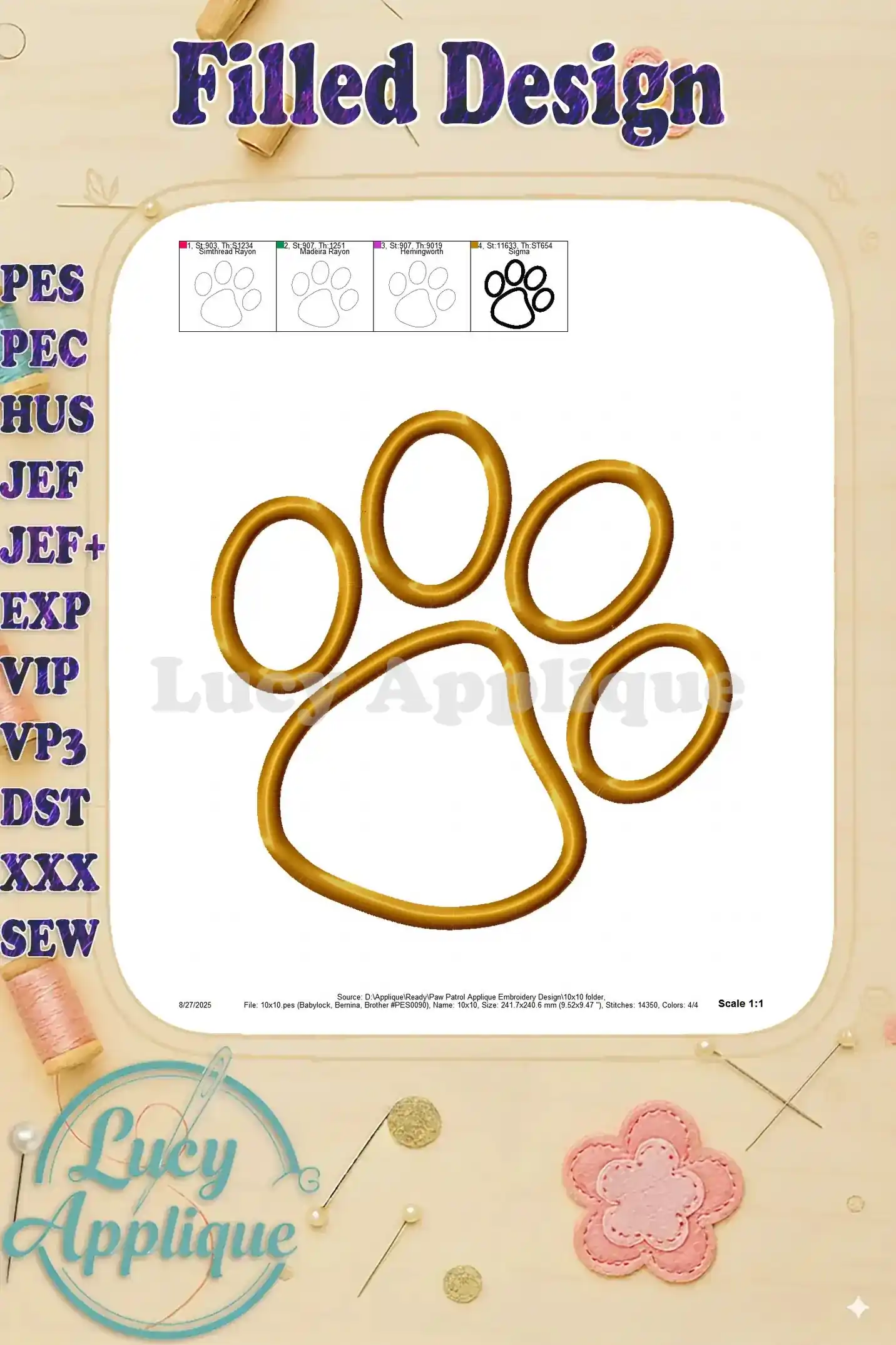 Adorable Paw Patrol applique embroidery design! Perfect for kids’ clothes, blankets, or accessories. Easy-to-follow instructions and multiple formats included. Add a playful touch to your projects!