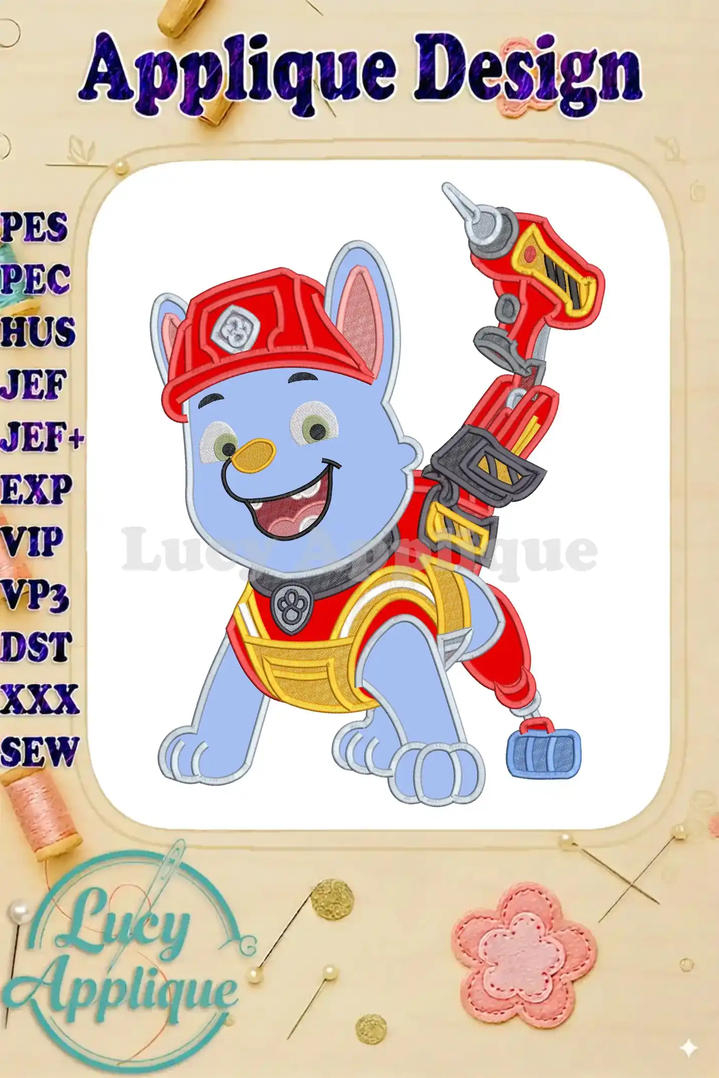Paw Patrol Dino Movie Rubble Applique Machine Embroidery Designs