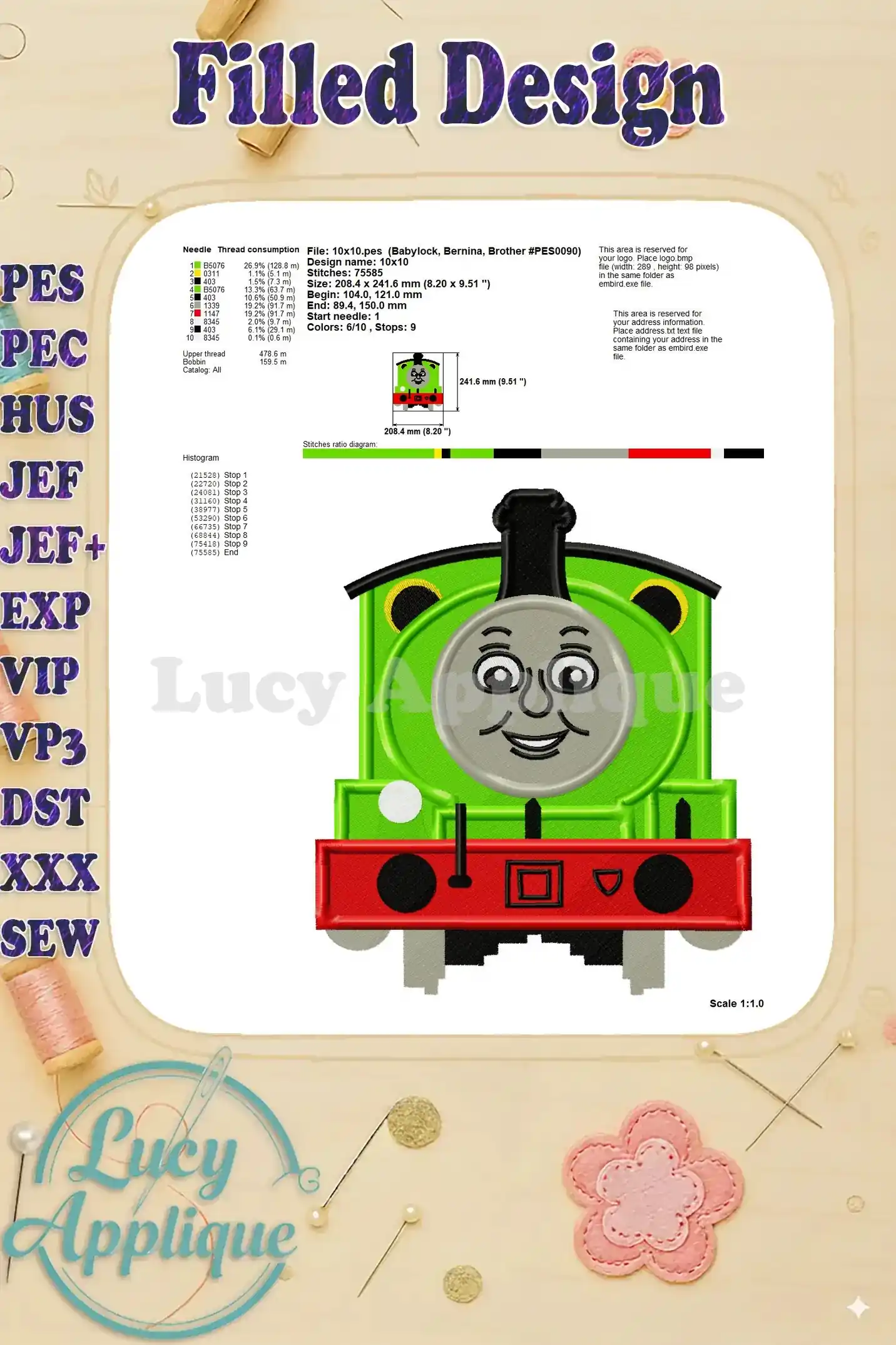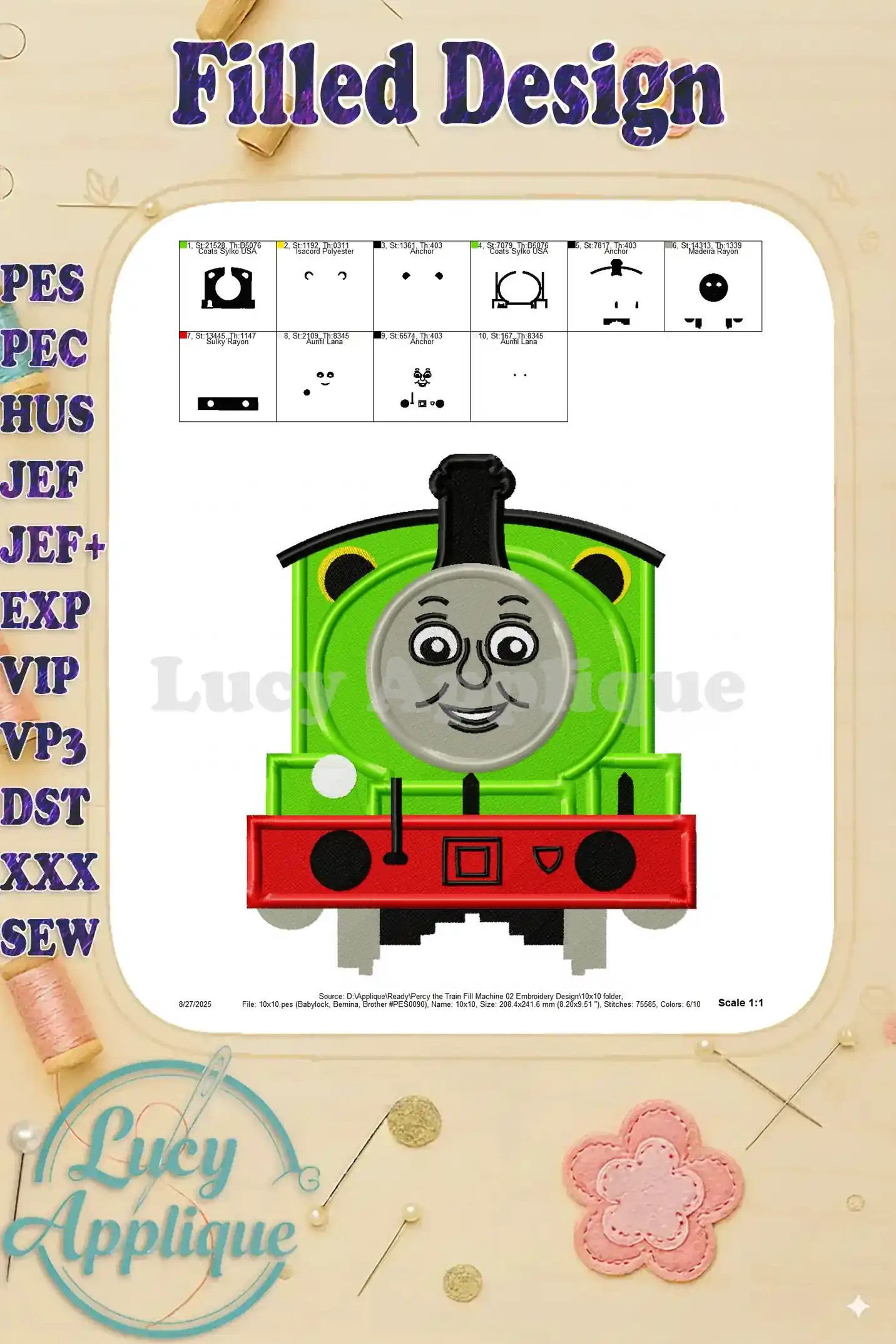 Percy the Train Fill Machine 02 Embroidery Design – Instant Download