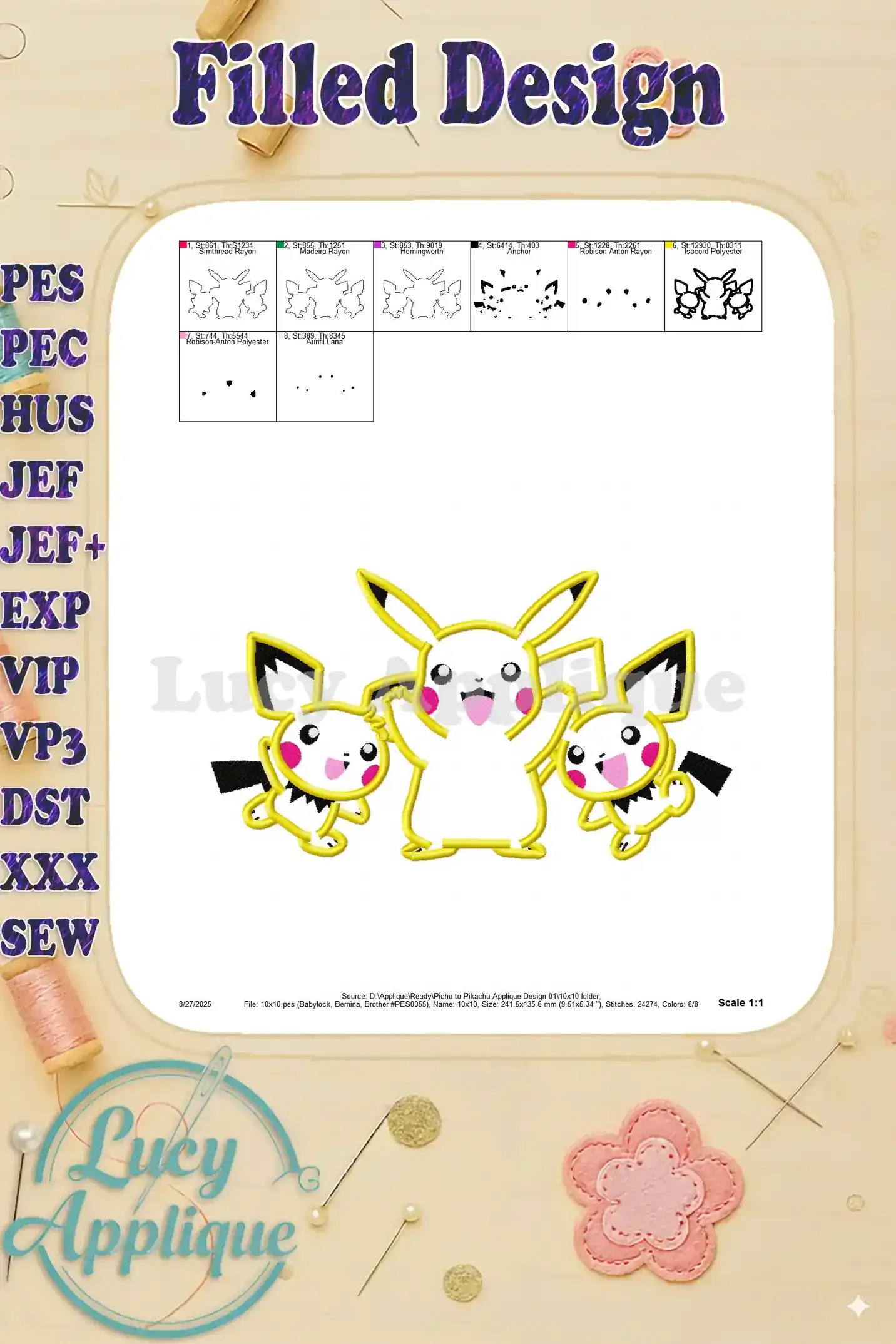 Pichu to Pikachu Applique Design 01 – Instant Download