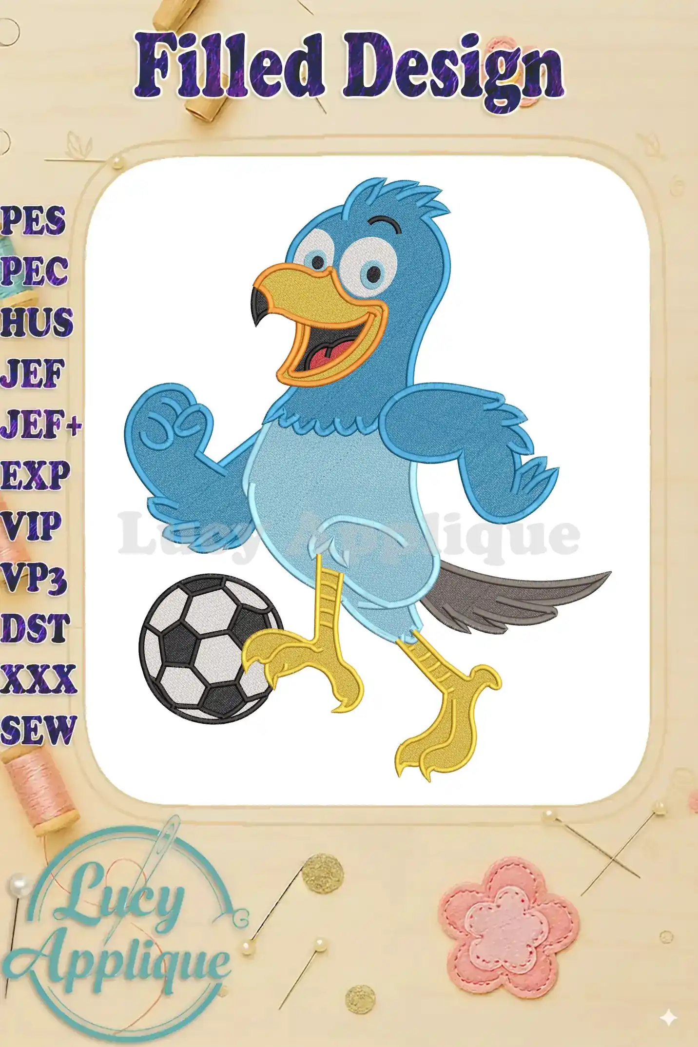 Pierre the Pigeon-Hawk Playing Soccer Fill Embroidery Designs