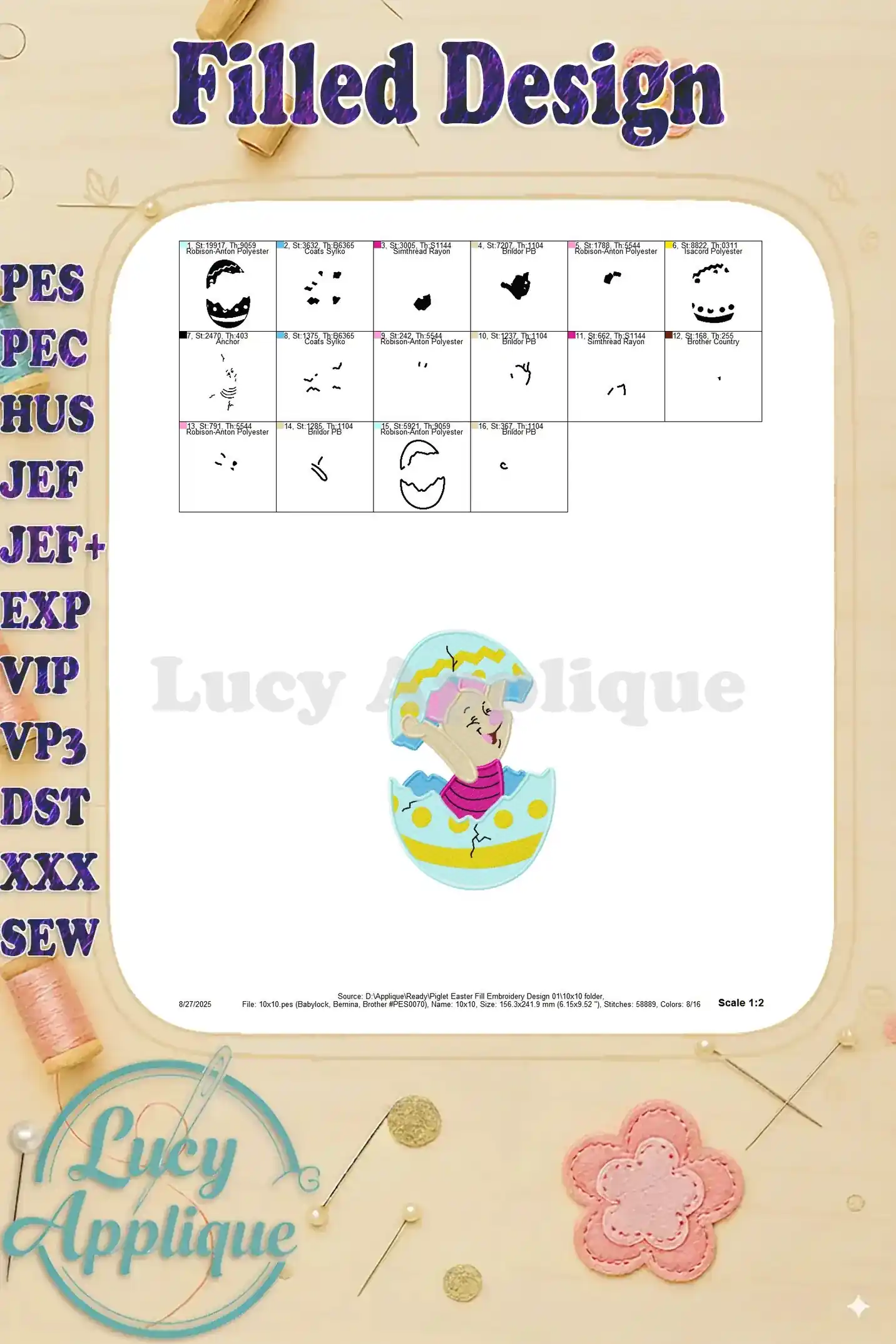 Piglet Easter Fill Embroidery Design 01 – Instant Download