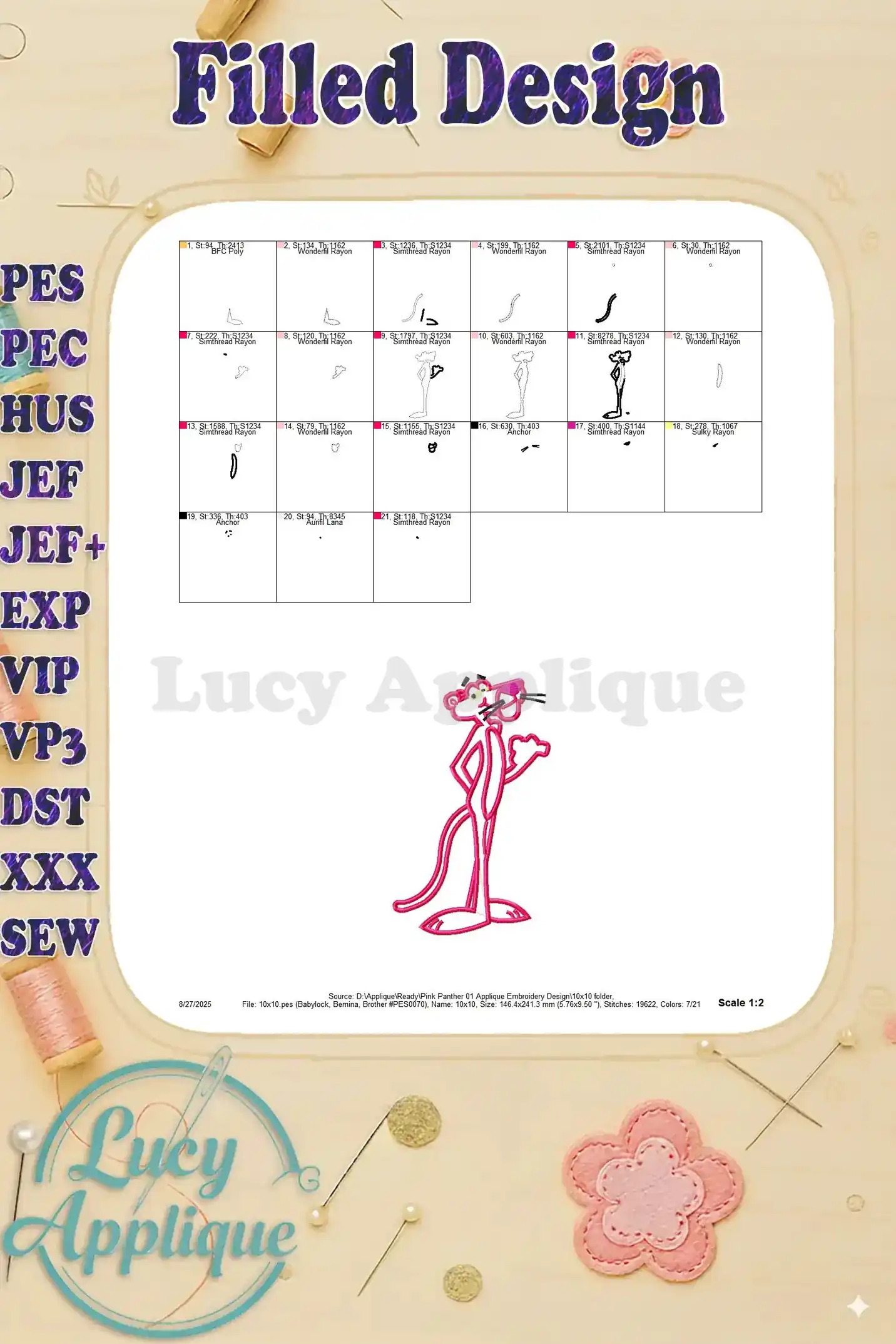 Pink Panther 01 Applique Embroidery Design – Instant Download