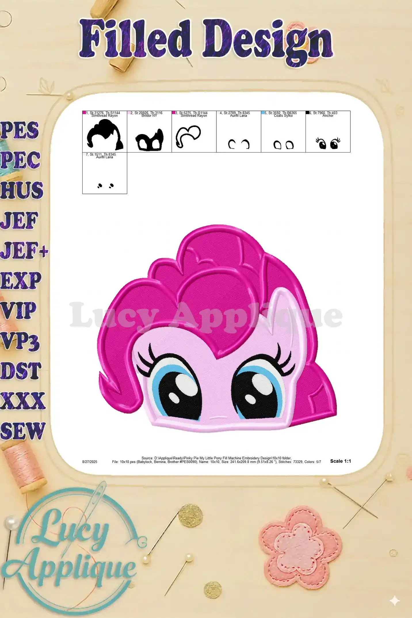 Pinky Pie My Little Pony Fill Machine Embroidery Design – Instant Download