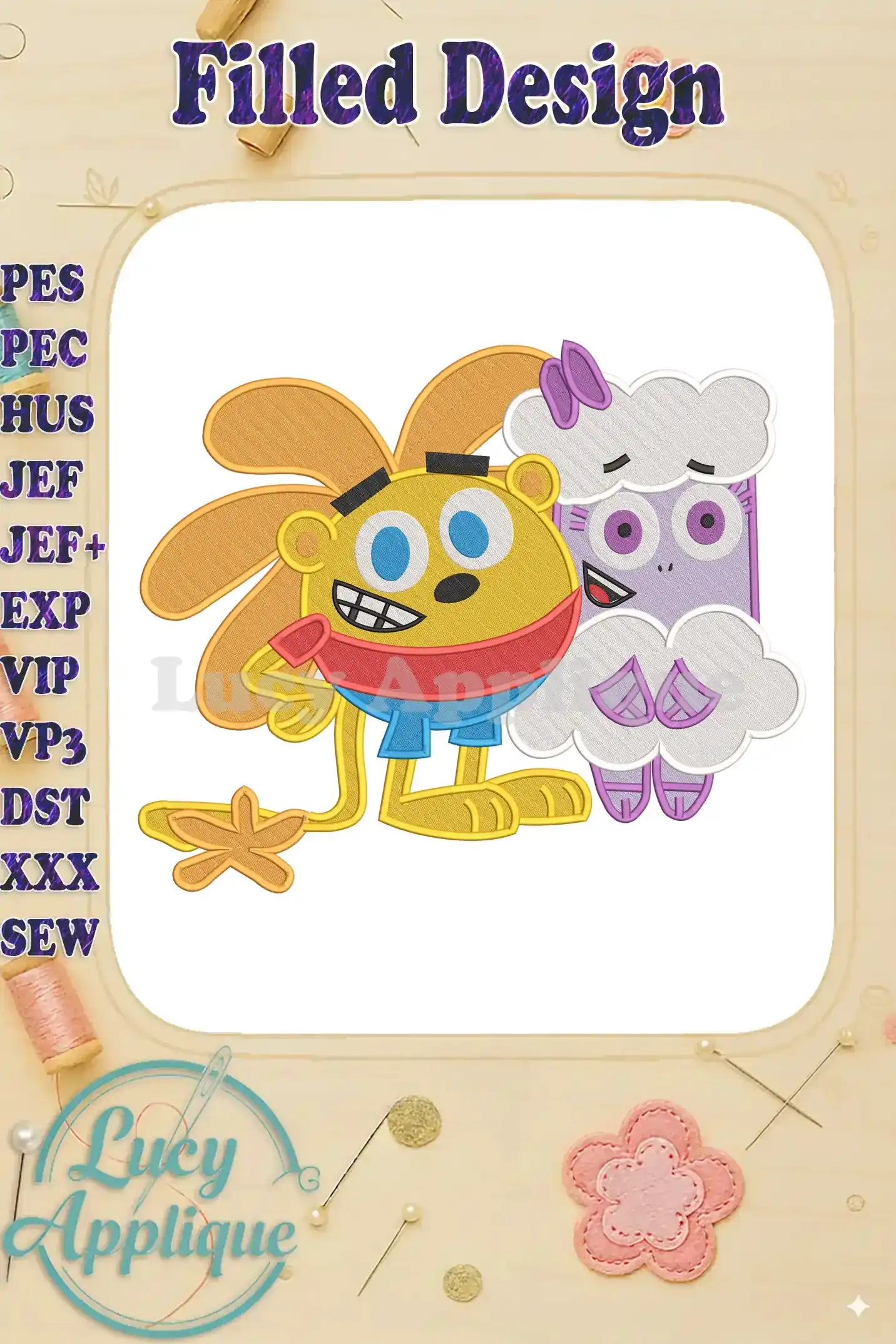 Playful Garden Cartoon Friends Fill Embroidery Designs for Children