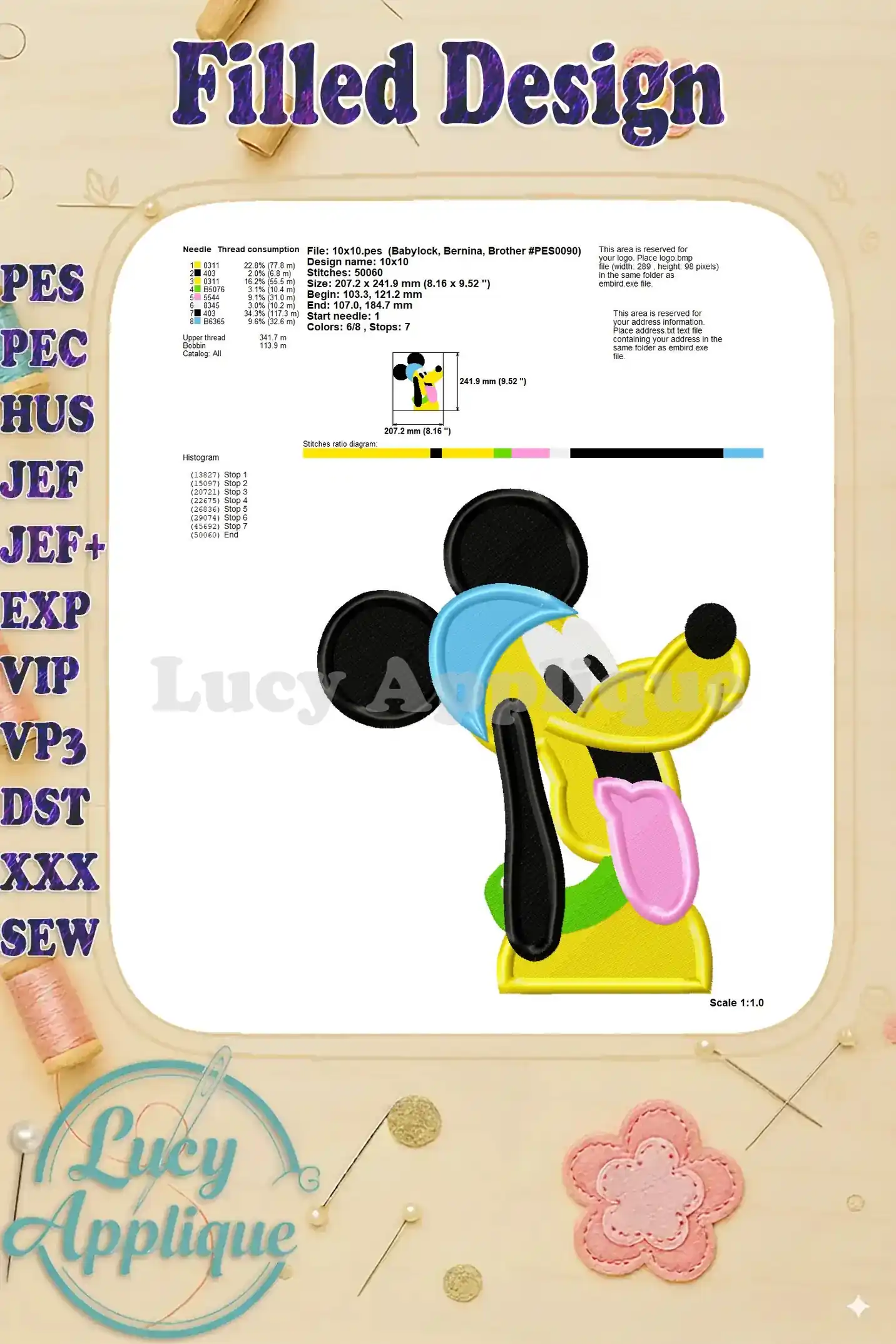 Pluto Mickey Mouse Fill Machine Embroidery Design – Instant Download