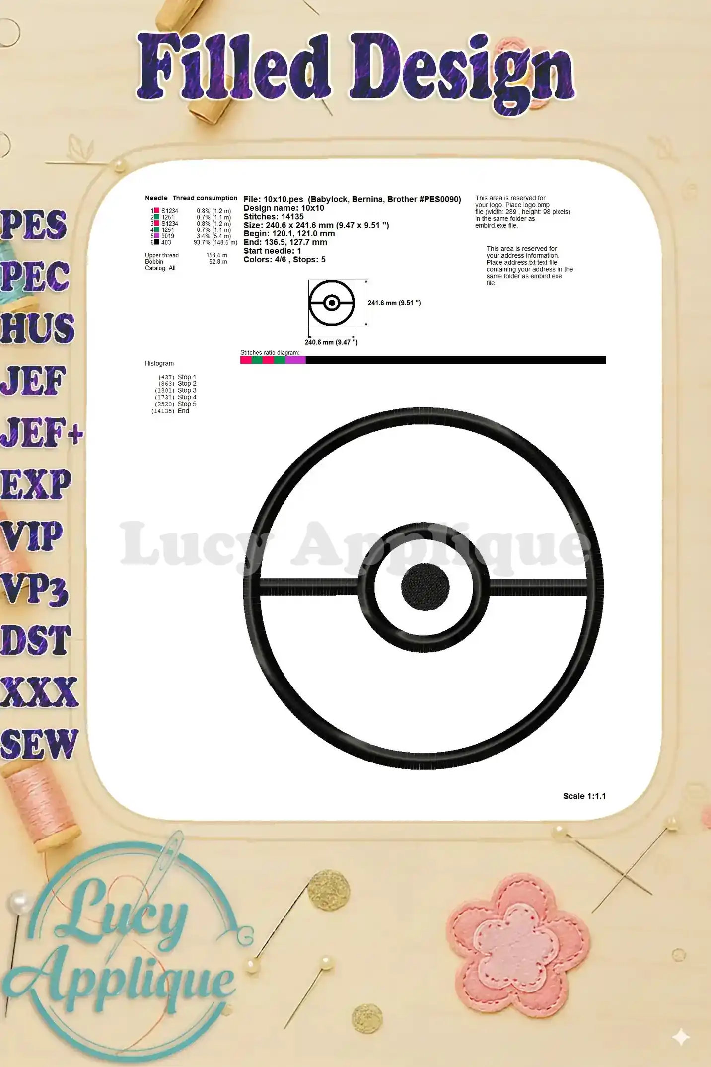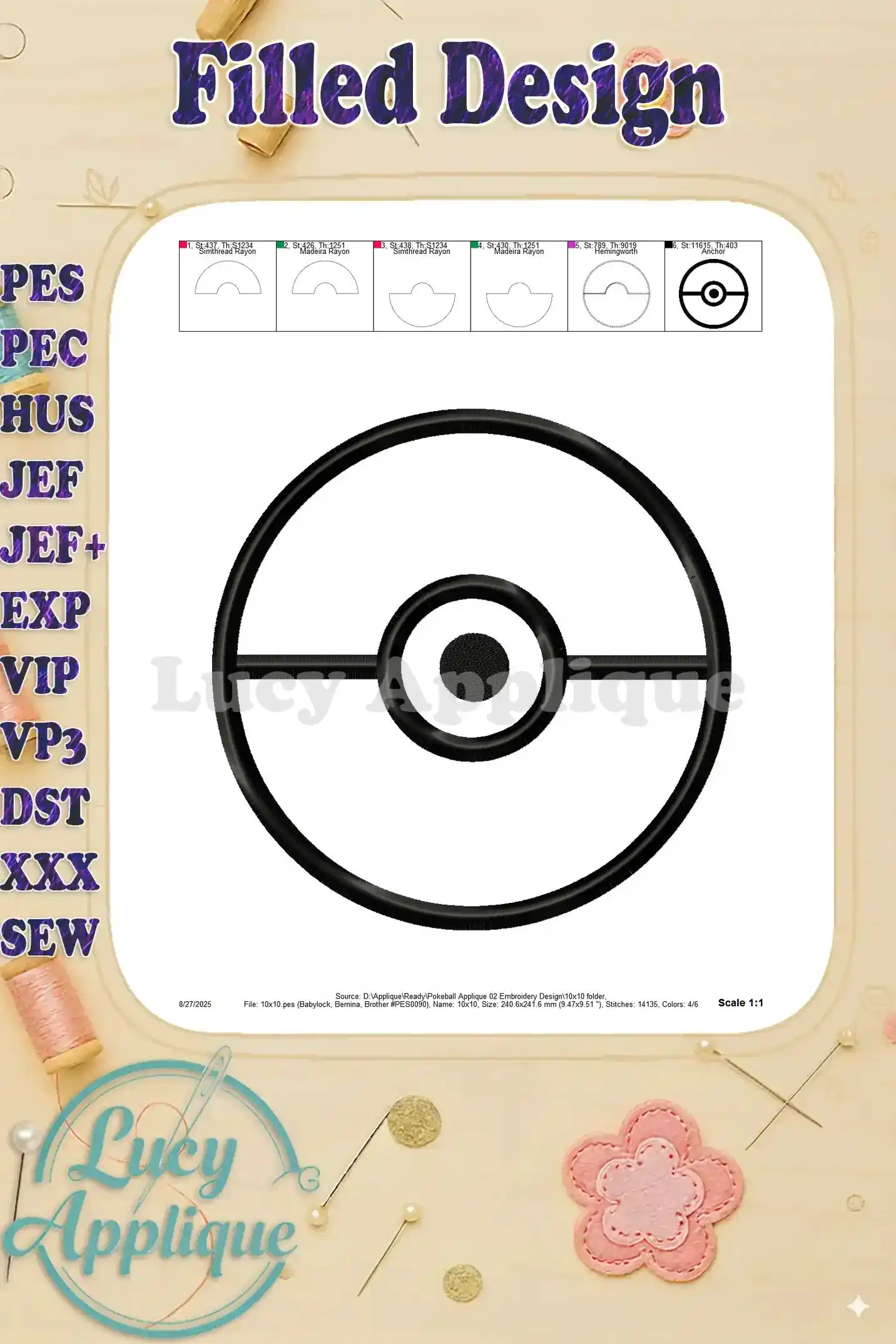Pokeball Applique 02 Embroidery Design – Instant Download