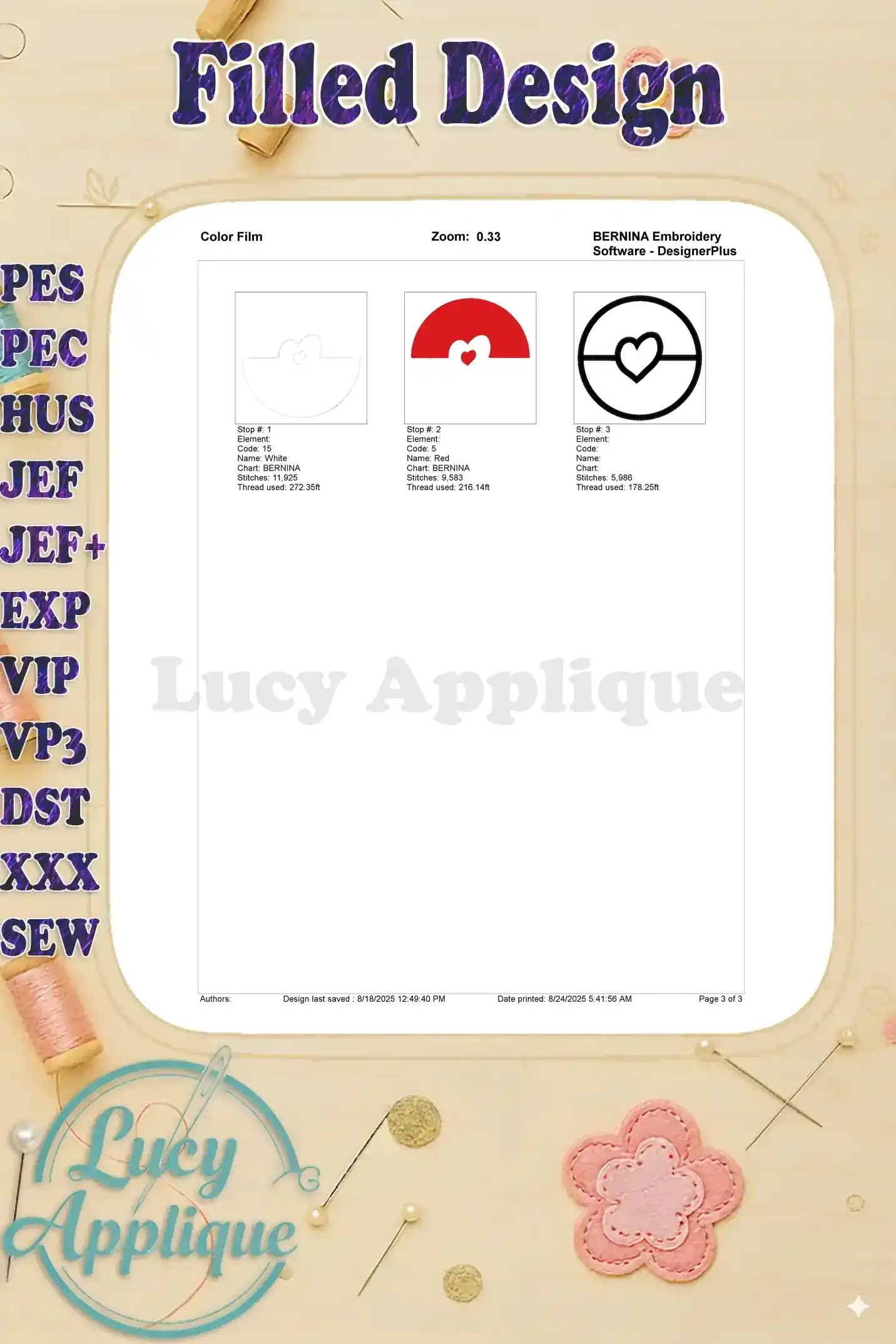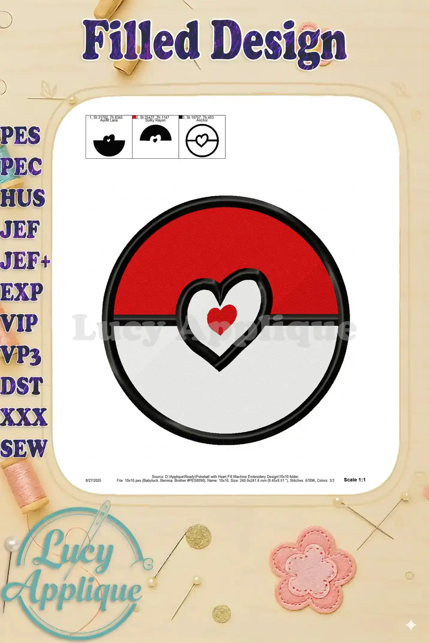 Pokeball with Heart Fill Machine Embroidery Design – Instant Download