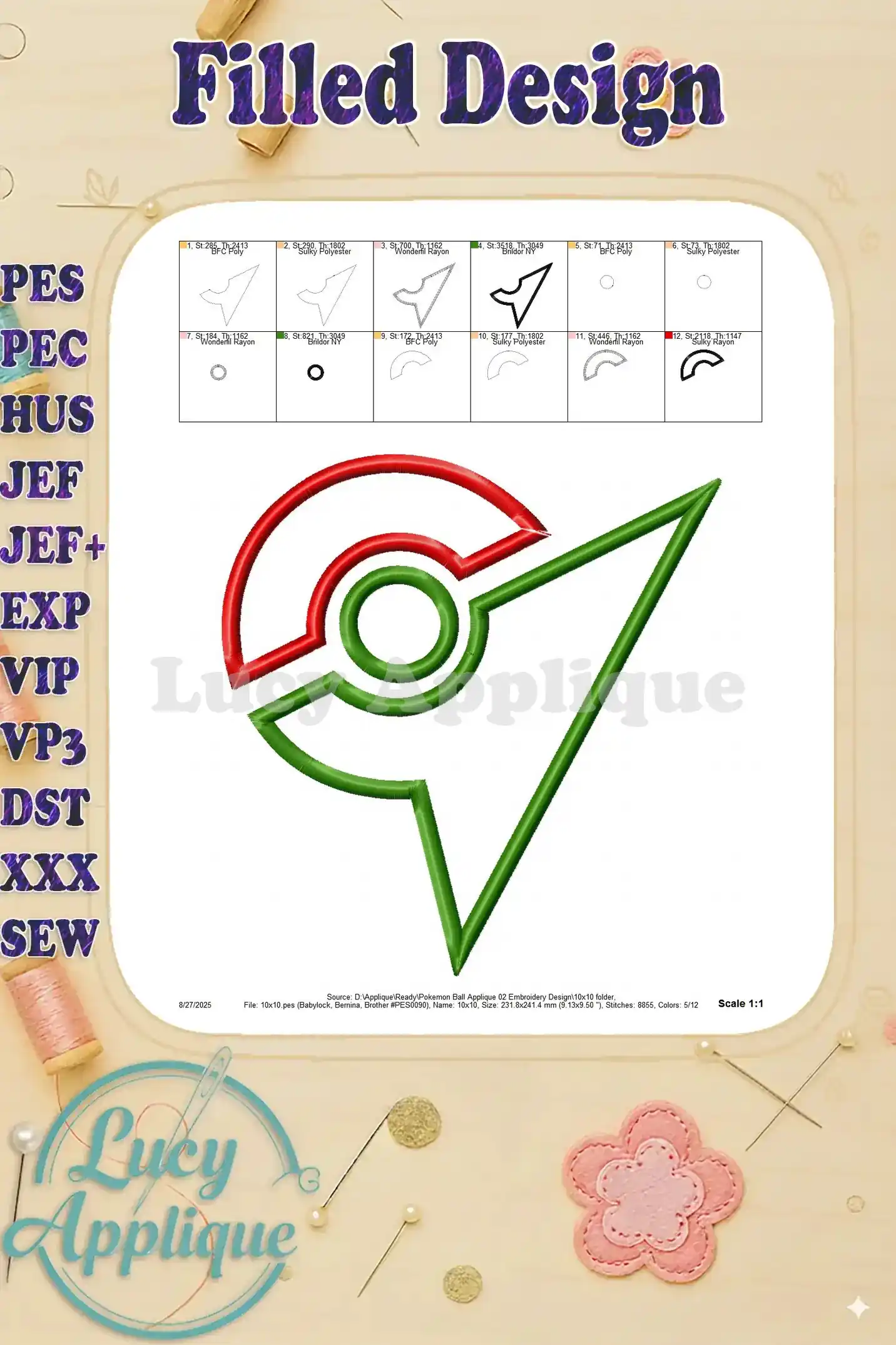 Pokemon Ball Applique 02 Embroidery Design – Instant Download