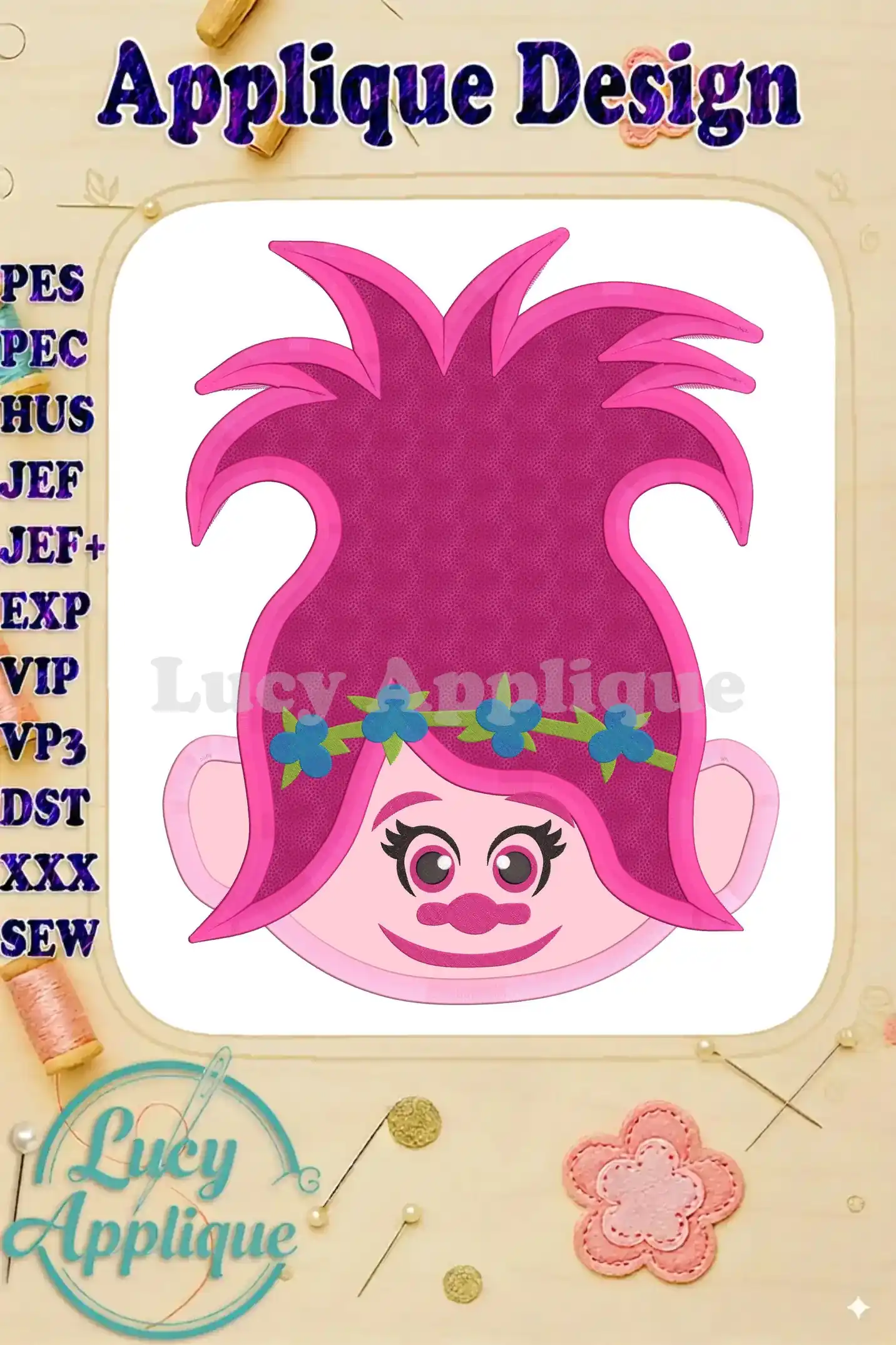 Poppy Trolls Machine Applique Design 01 – Instant Download