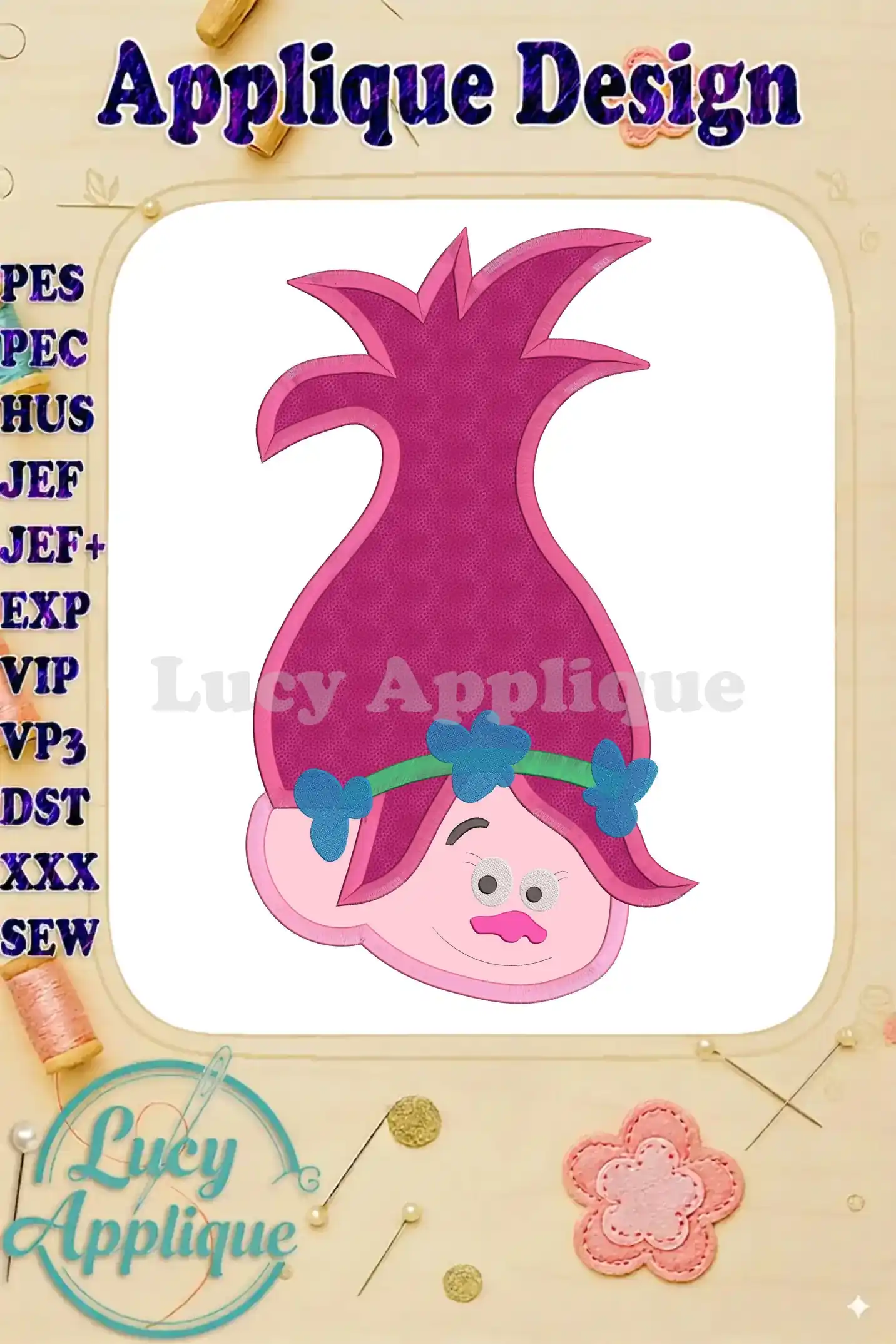 Poppy Trolls Machine Applique Design 02 – Instant Download