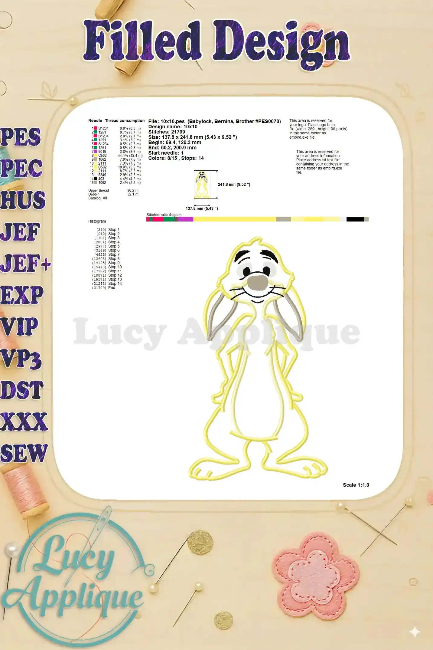 Rabbit Winnie the Pooh Applique Design 02 – Instant Download