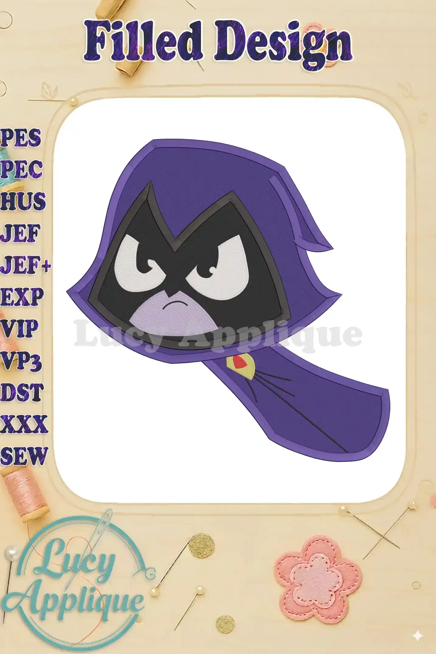 Raven Teen Titans Go Fill Embroidery Design 02 – Instant Download
