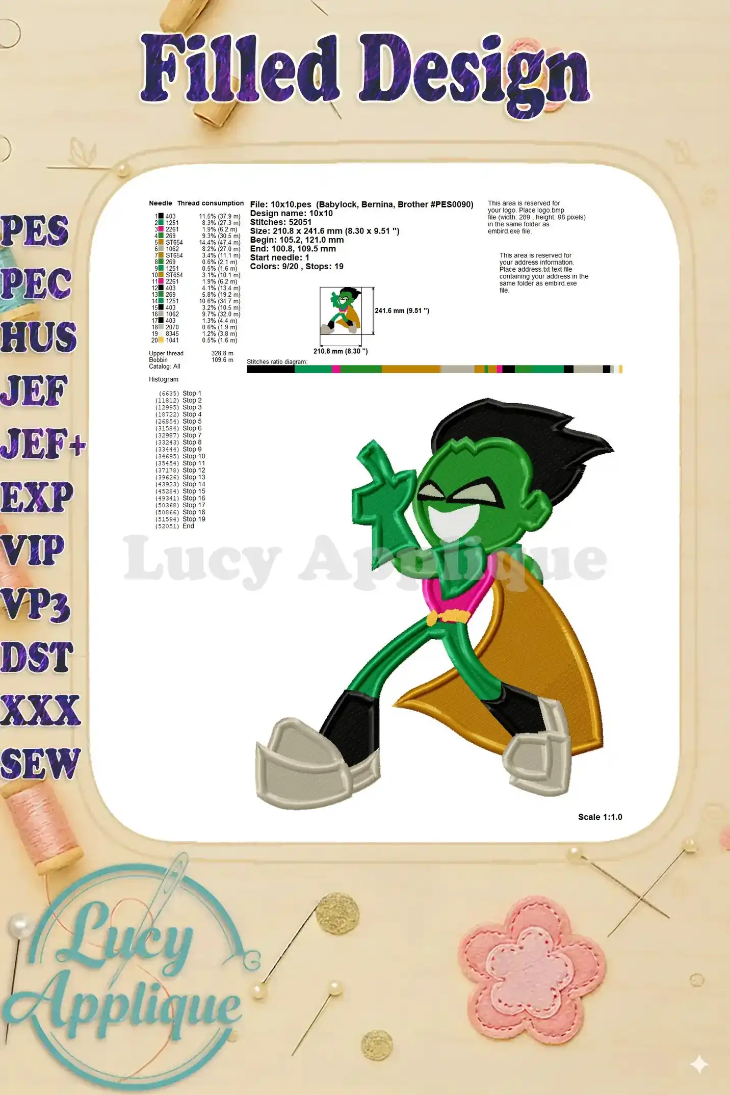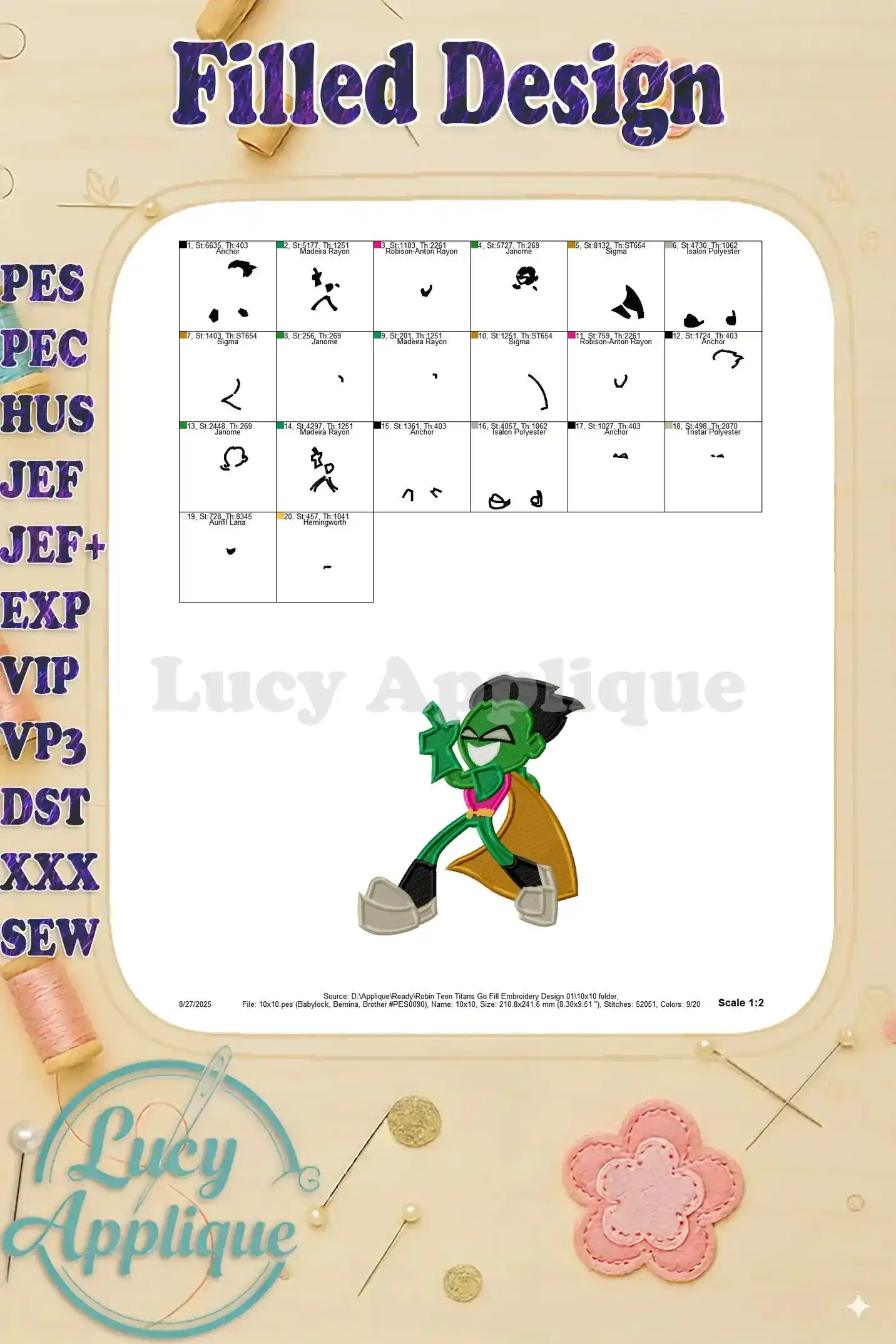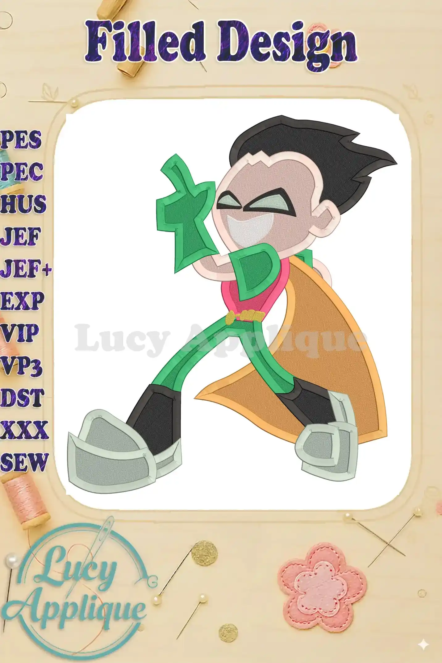 Robin Teen Titans Go Fill Embroidery Design 01 – Instant Download