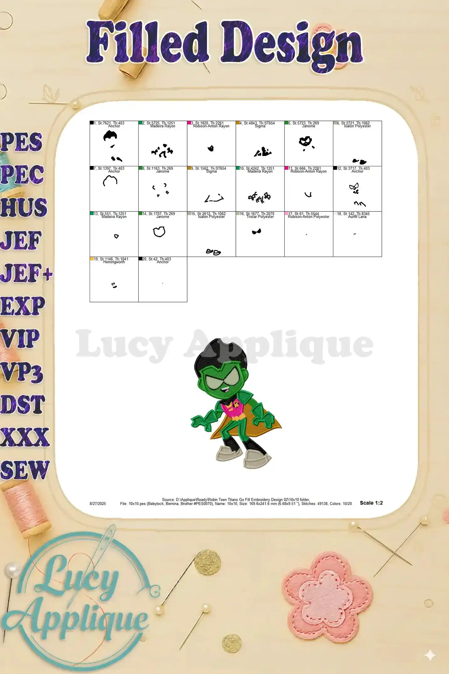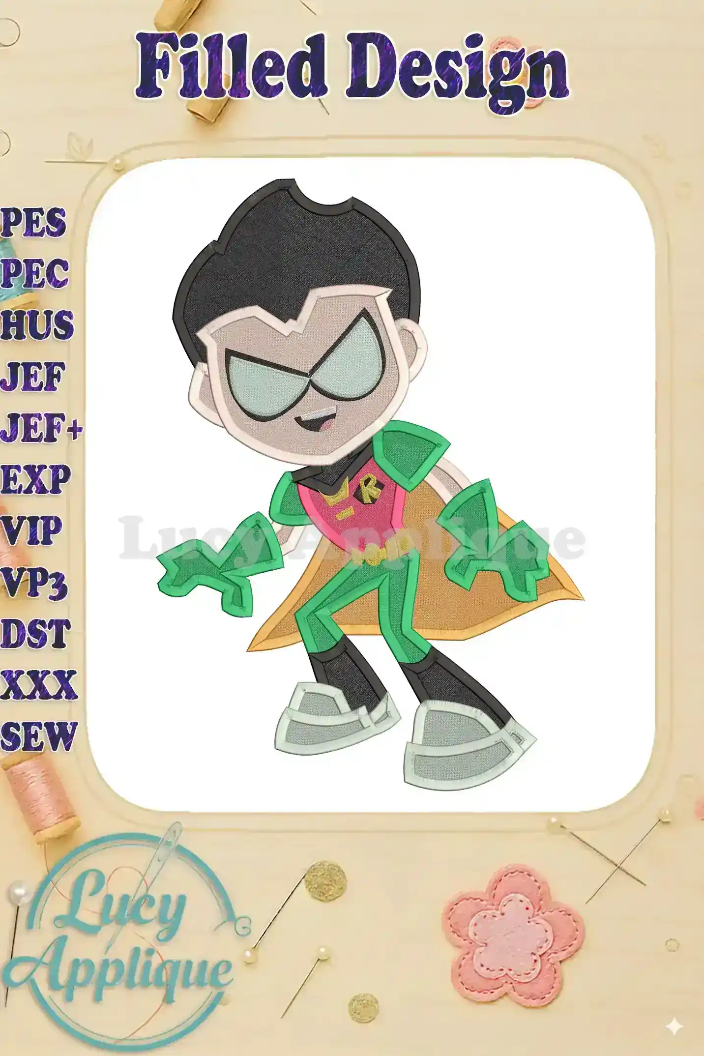 Robin Teen Titans Go Fill Embroidery Design 02 – Instant Download