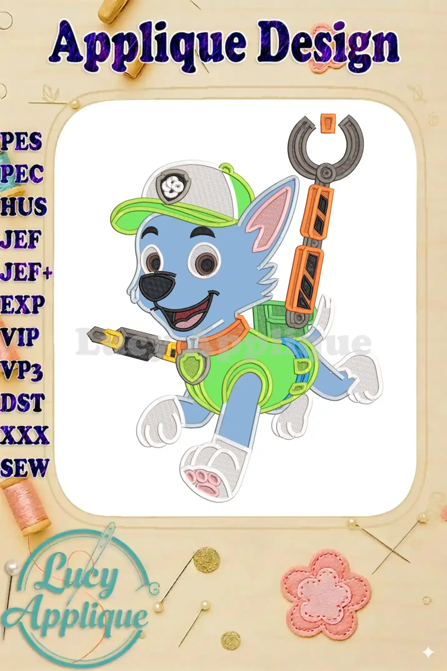 Rocky Paw Patrol Dino Movie Applique Embroidery Designs with Claw Tool