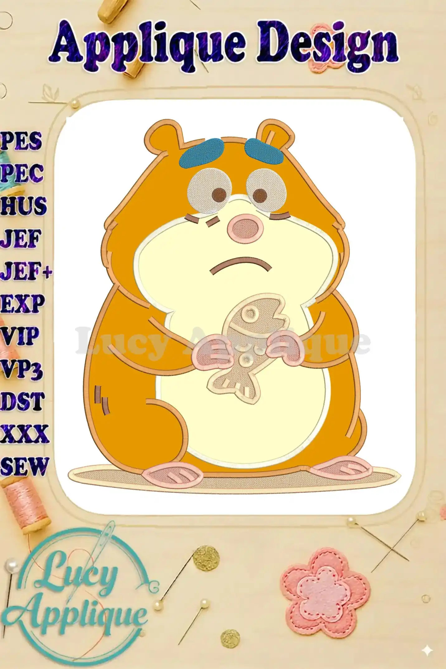Sad Animal Crackers Hamster with Fish Cracker Applique Embroidery Designs
