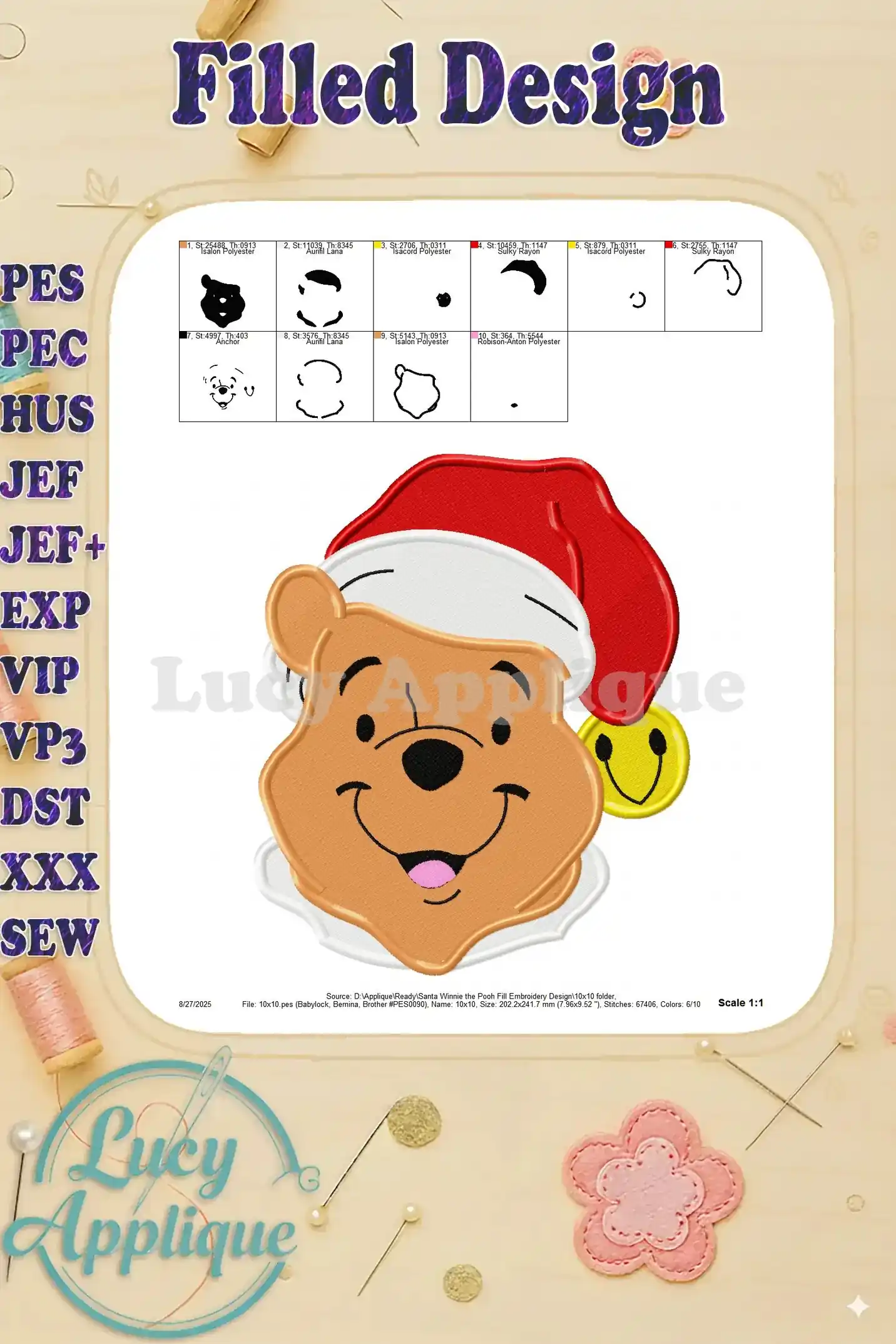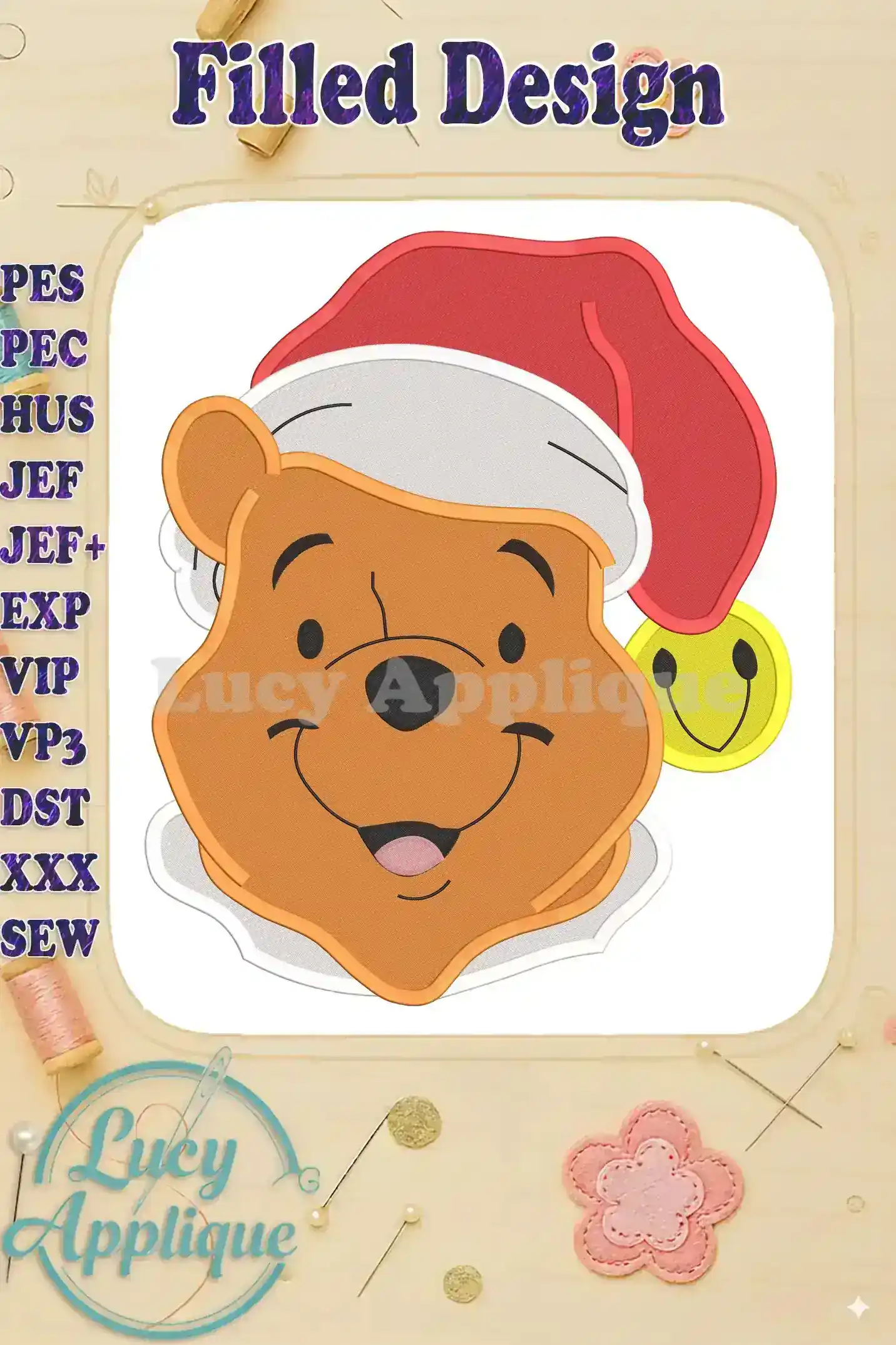 Santa Winnie the Pooh Fill Embroidery Design – Instant Download