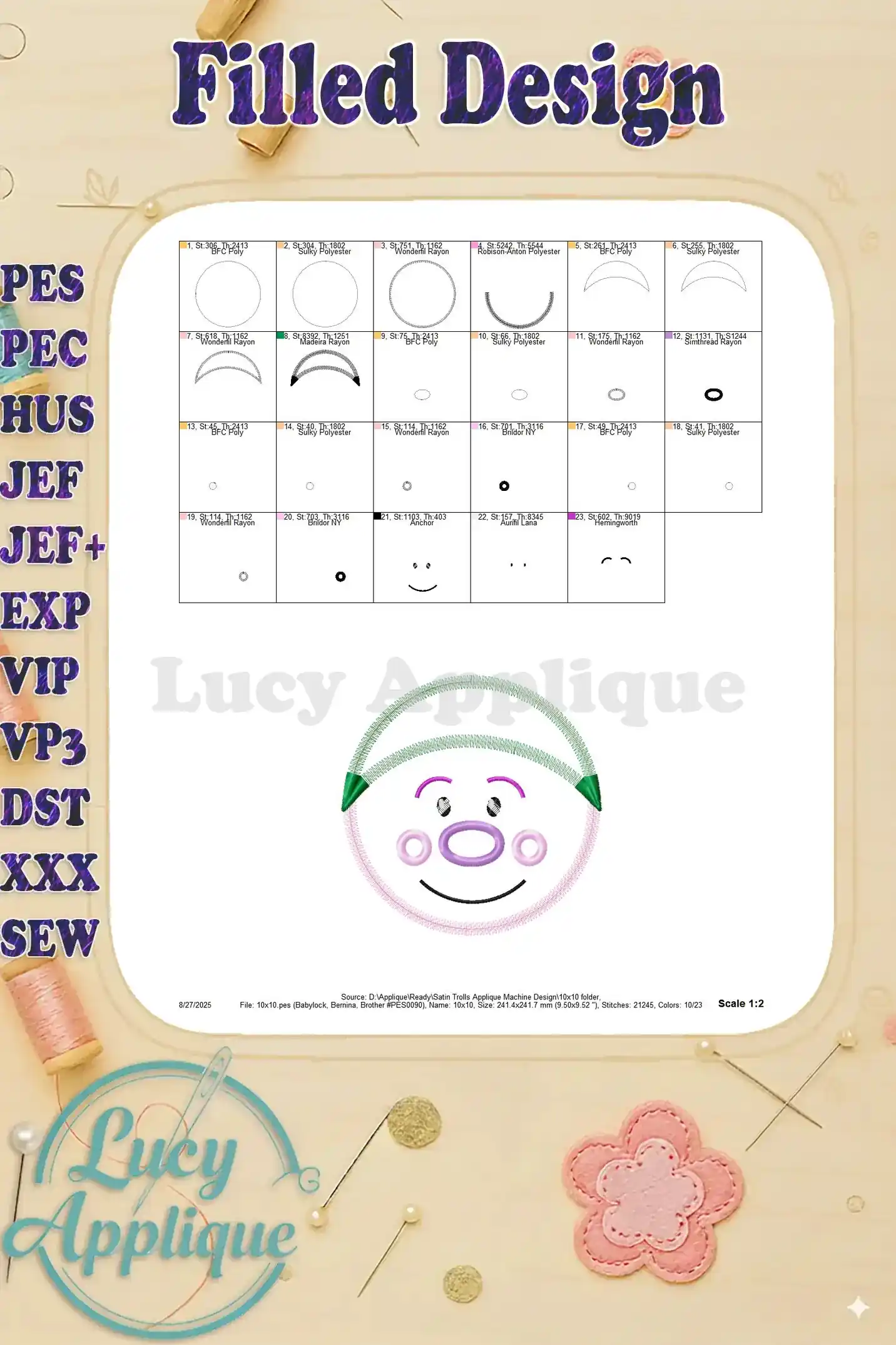 Adorable satin stitch troll applique machine embroidery design! Perfect for kids’ clothes, bags, or home decor. Easy-to-follow instructions included. Get yours now!