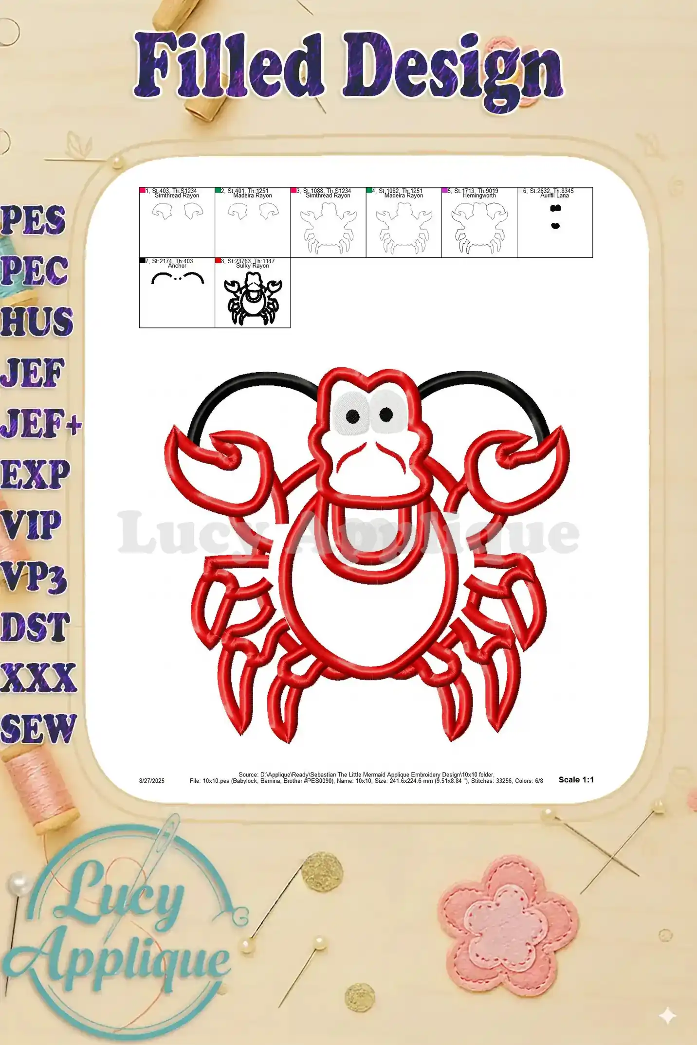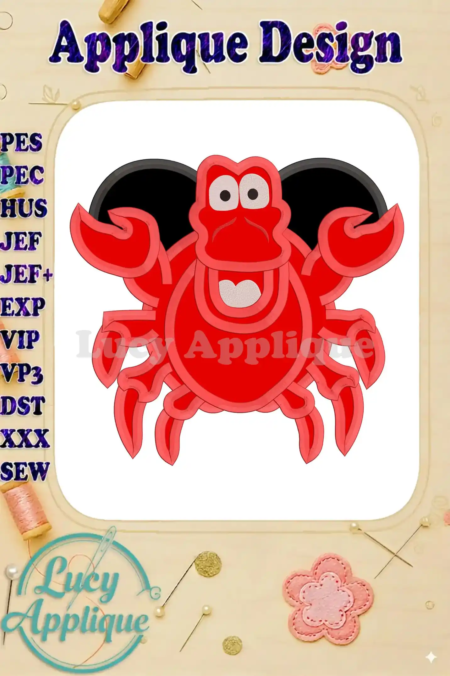 Sebastian The Little Mermaid Applique Embroidery Design – Instant Download