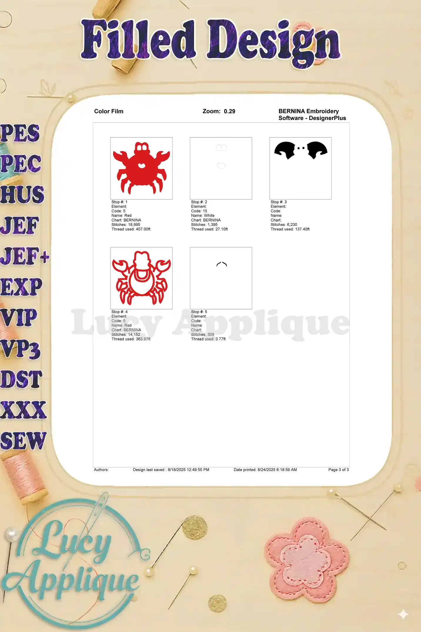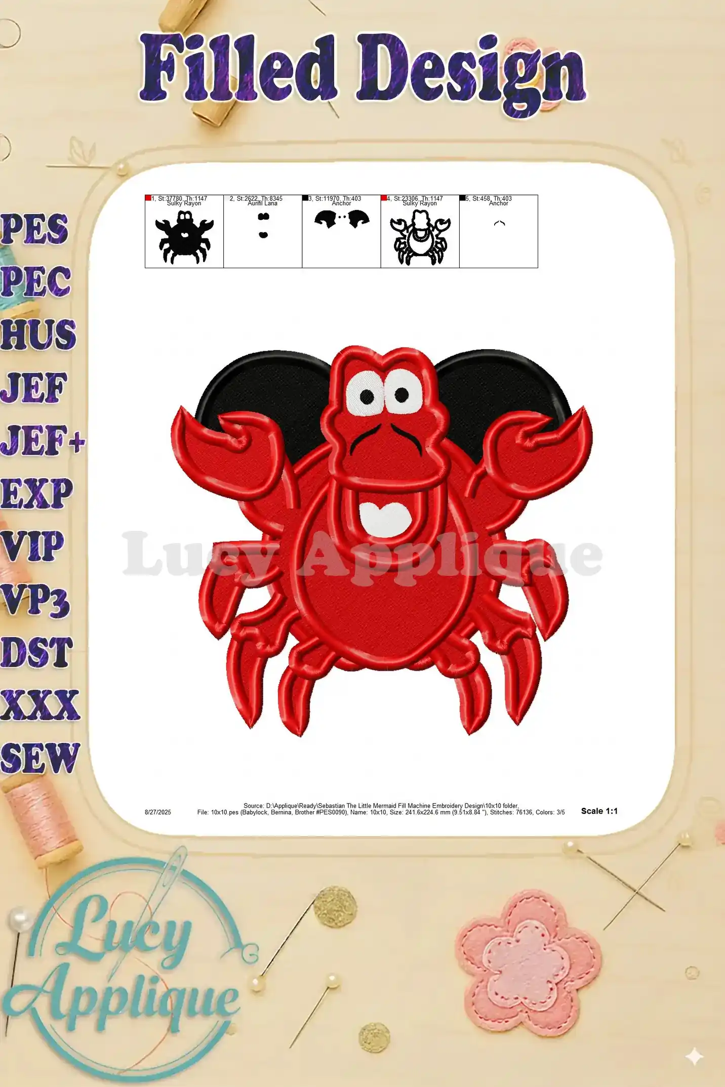 Sebastian The Little Mermaid Fill Machine Embroidery Design – Instant Download