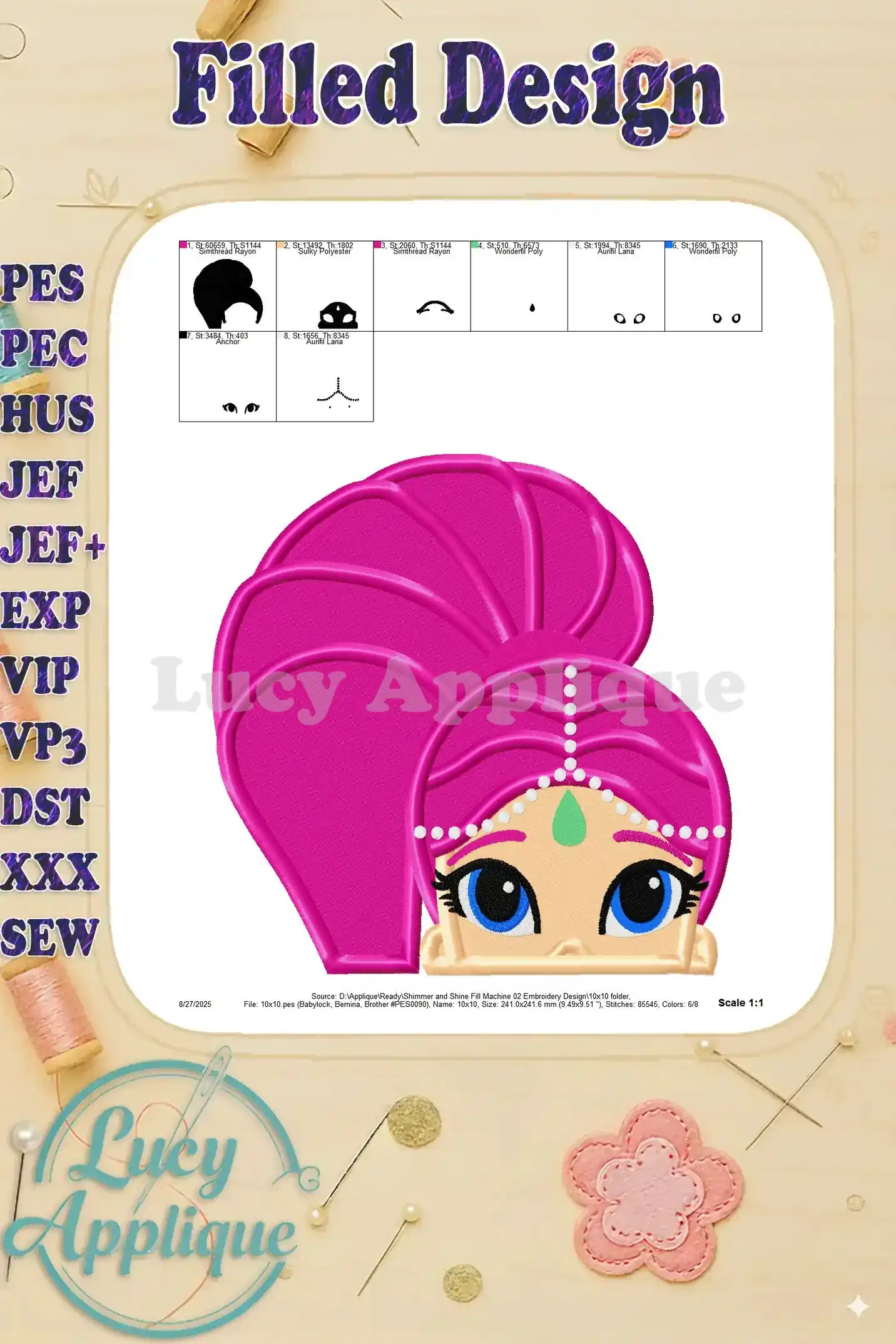 Shimmer and Shine Fill Machine 02 Embroidery Design – Instant Download