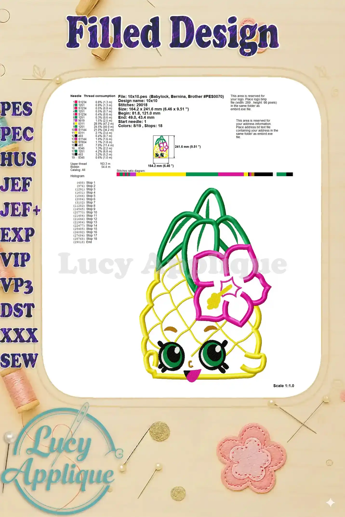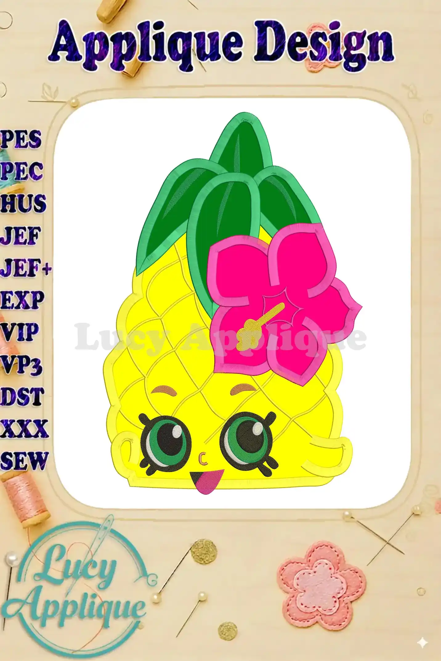 Shopkins Pineapple Head Applique Embroidery Design – Instant Download