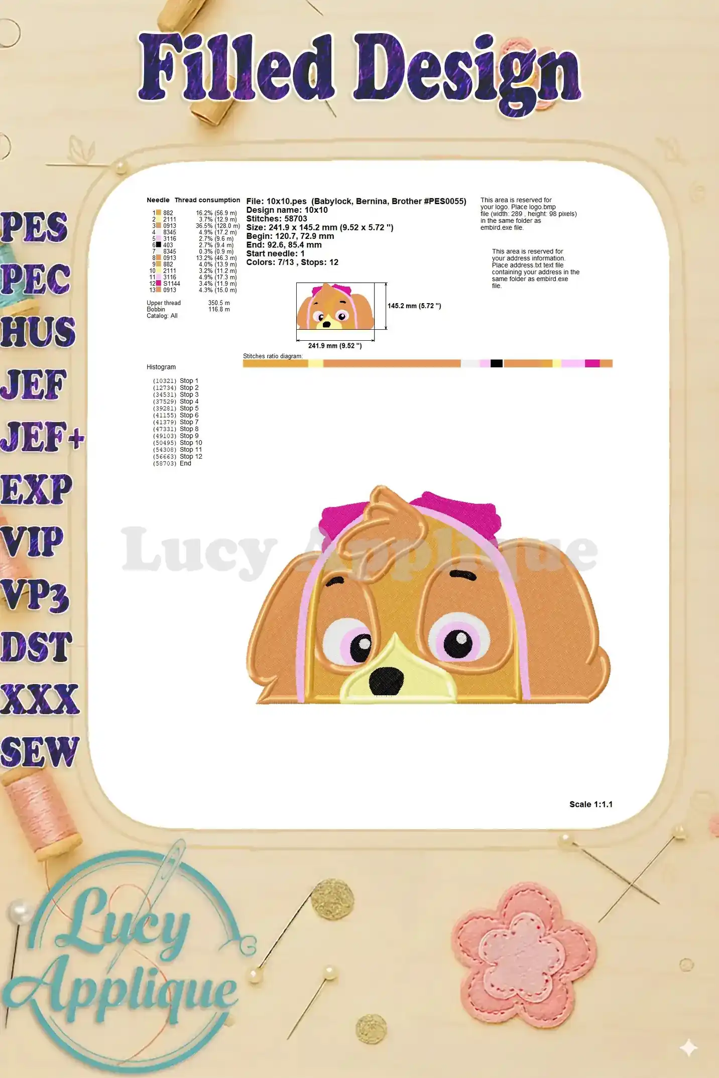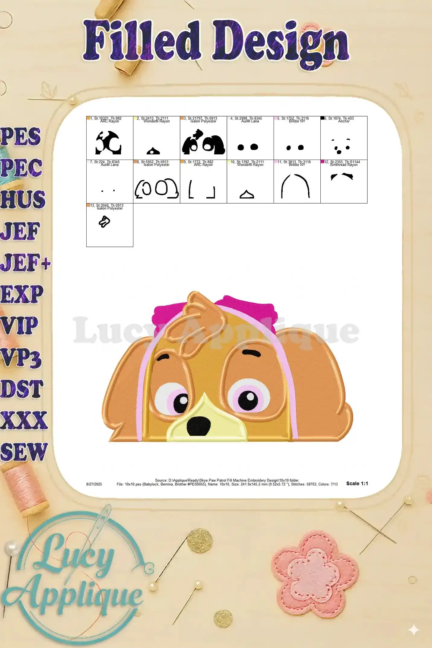 Skye Paw Patrol Fill Machine Embroidery Design – Instant Download