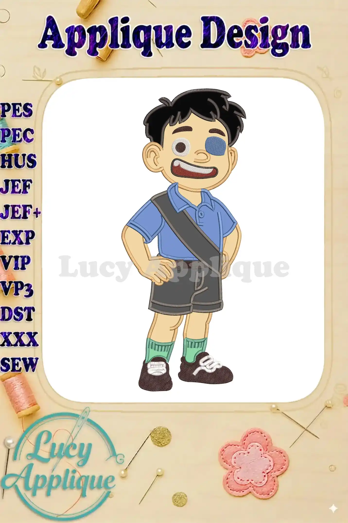 Smiling Elio Boy Scout Applique Embroidery Designs for Kids