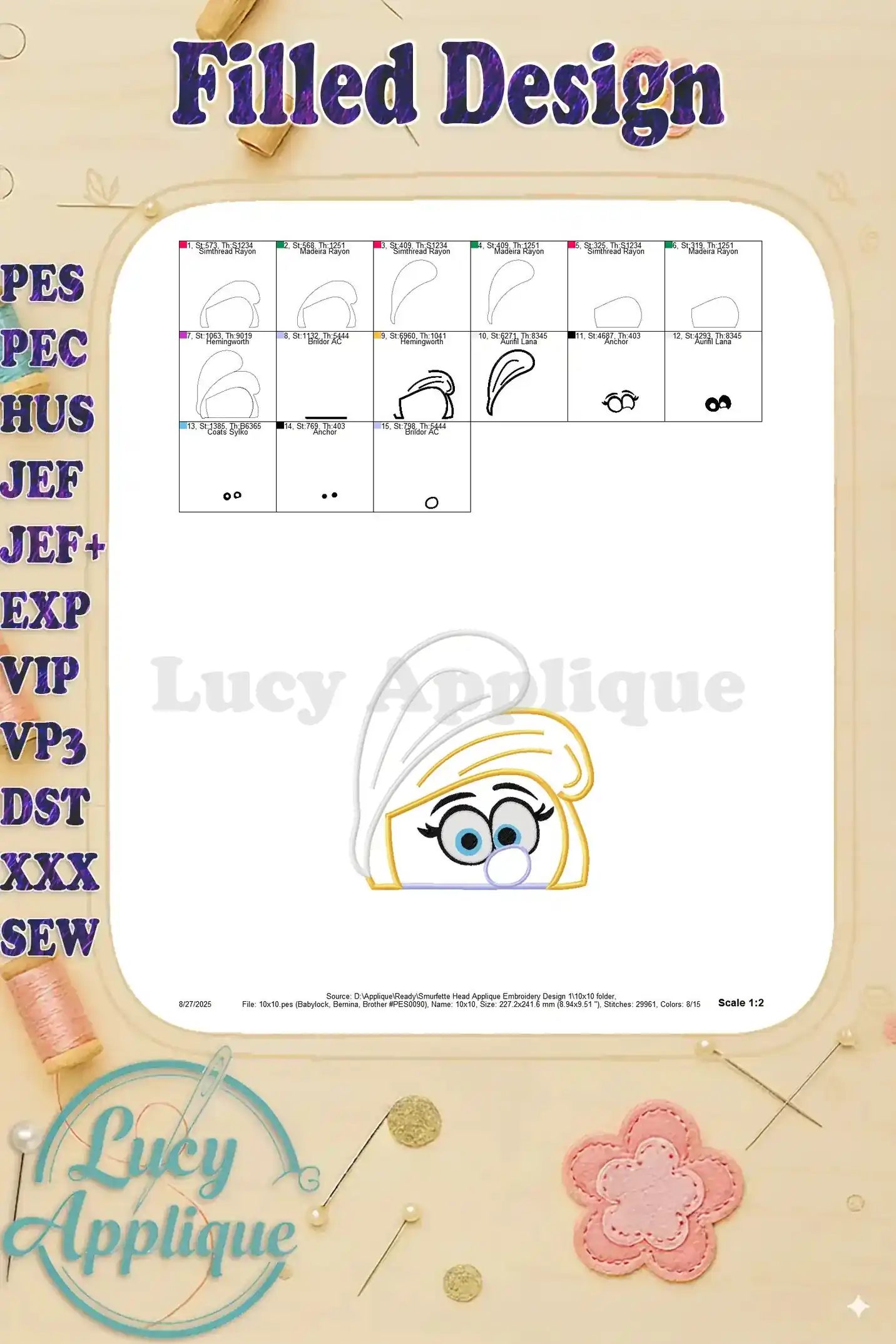Smurfette Head Applique Embroidery Design 1 – Instant Download