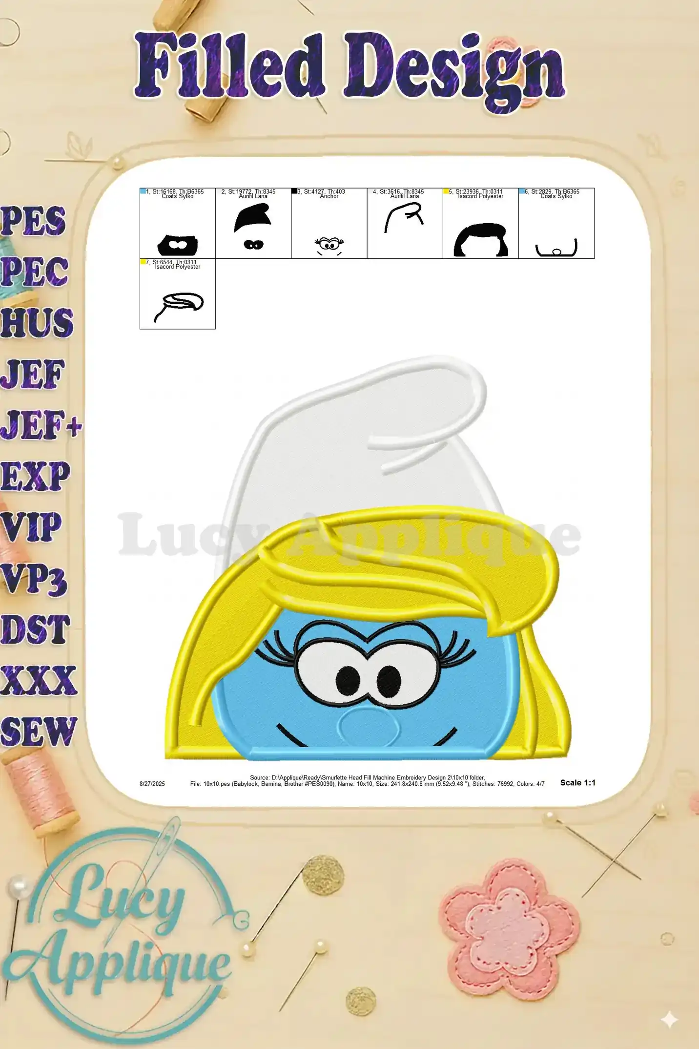 Smurfette Head Fill Machine Embroidery Design 2 – Instant Download